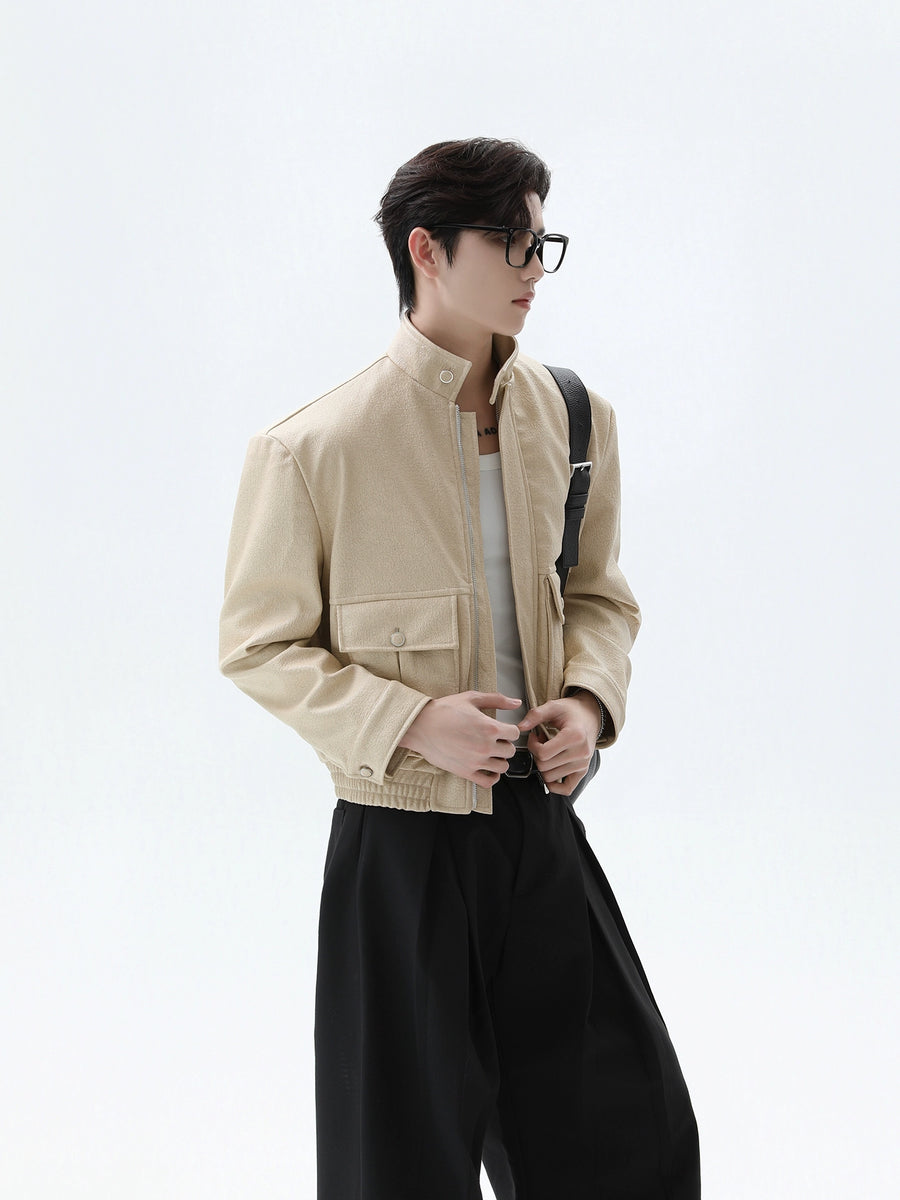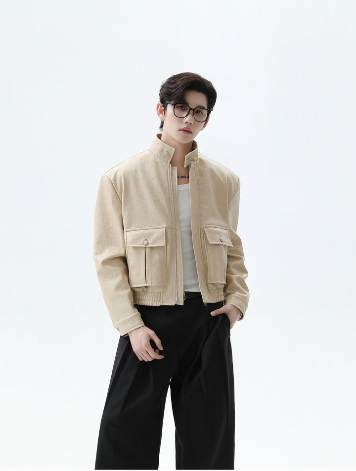 Stand-Up Collar PU Jacket