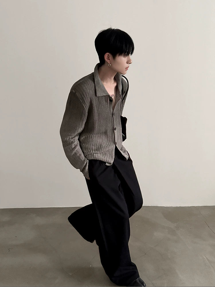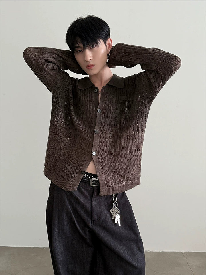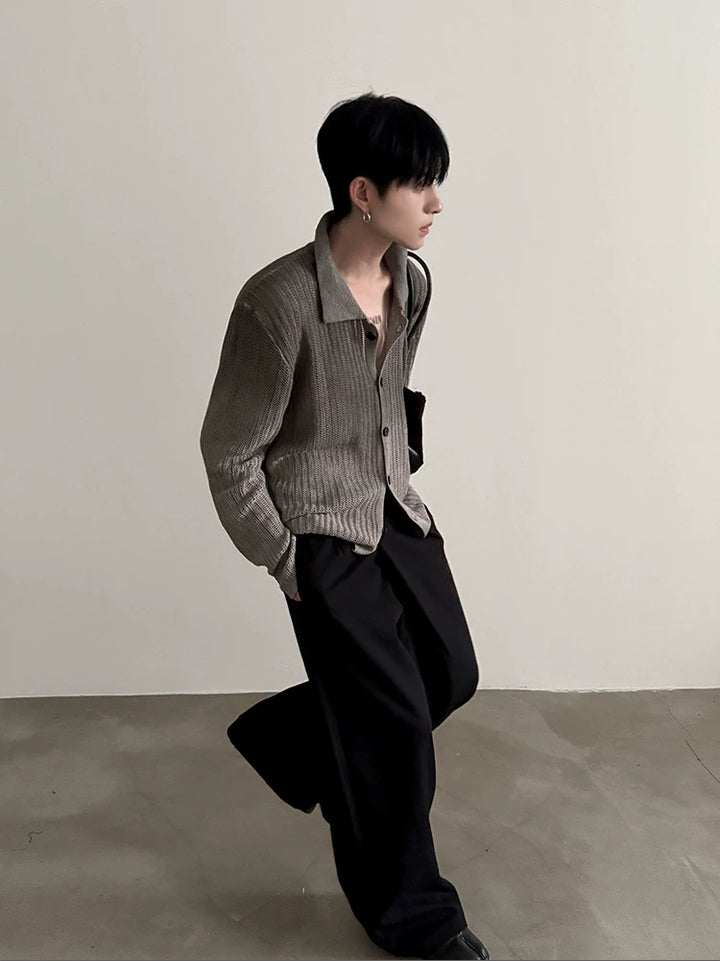 Polo Collar Knit Button Cardigan