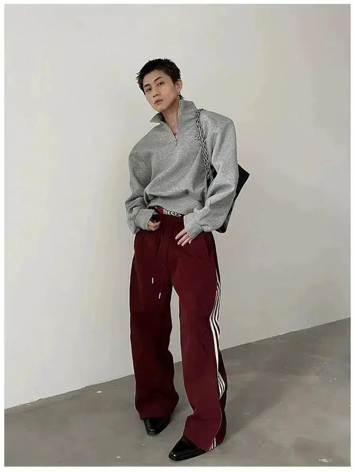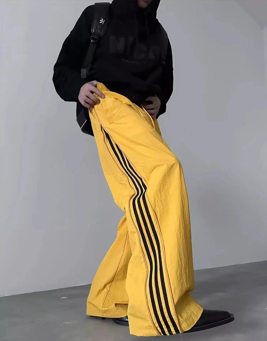Striped Wide-Leg Side Zipper Pants
