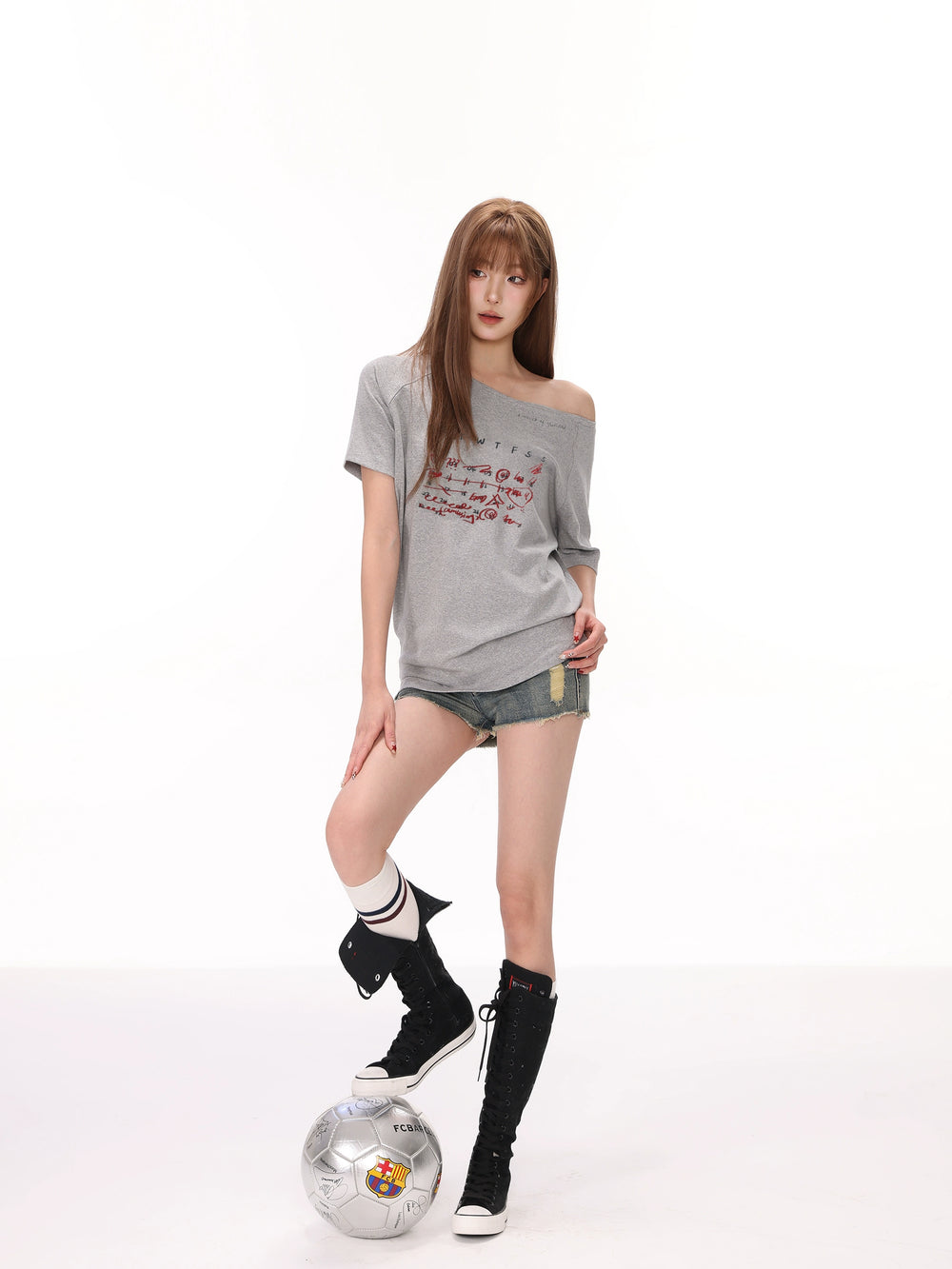 Off-Shoulder Loose One-Sleeve T-Shirt