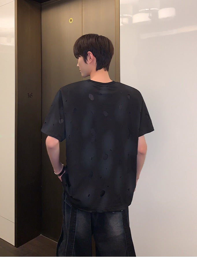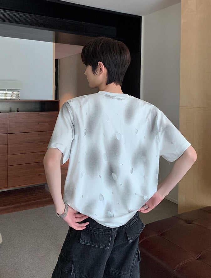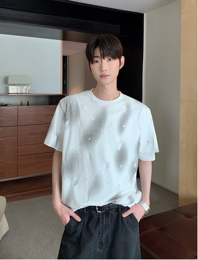 Ripped Spray-Dyed Loose Short Sleeve T-shirt