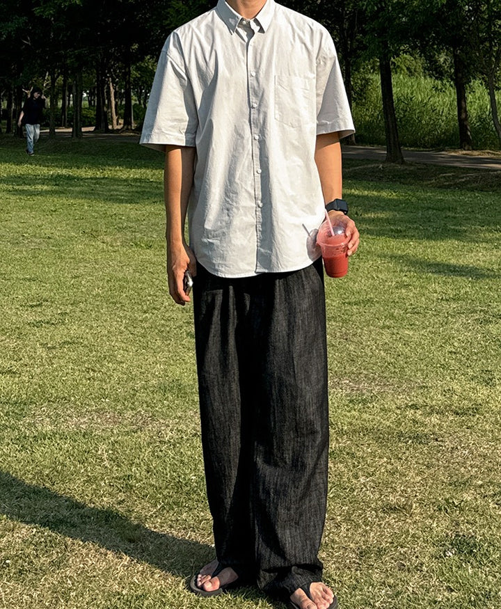 Wide-Leg Drape Straight Jeans