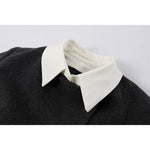 - Classic contrast collar design with button details.