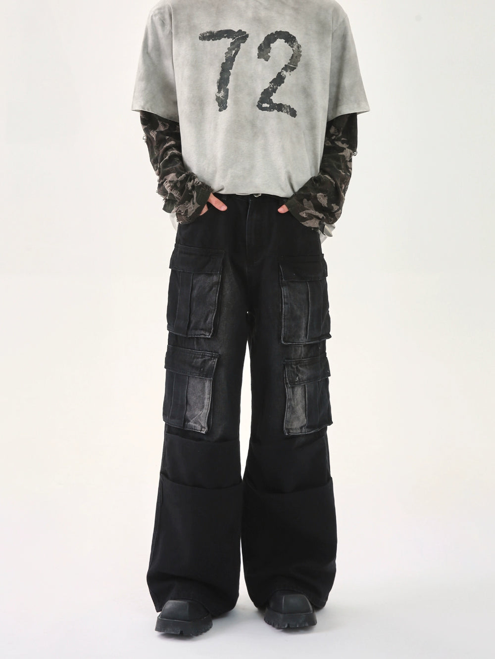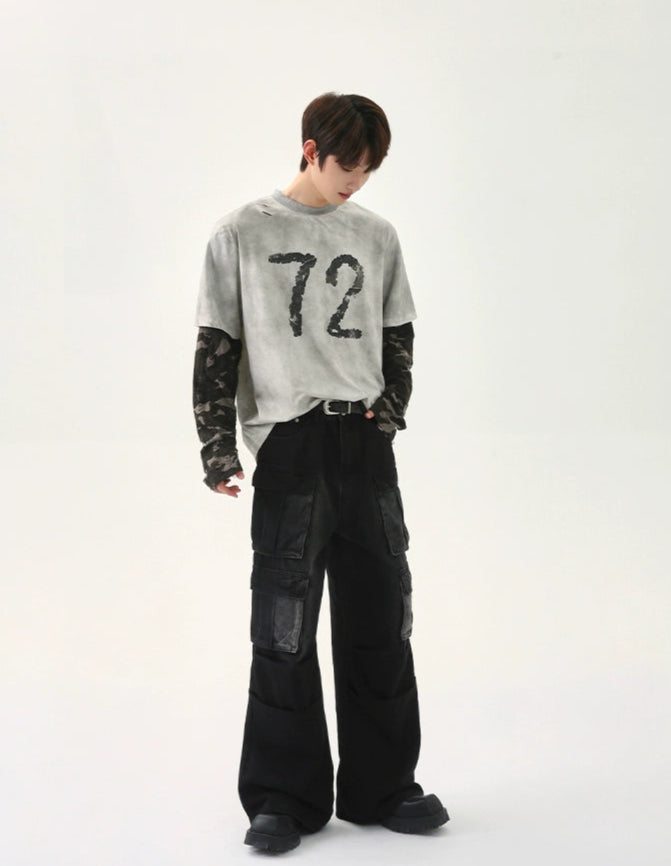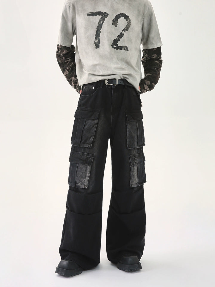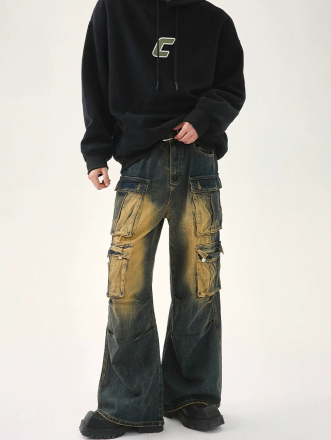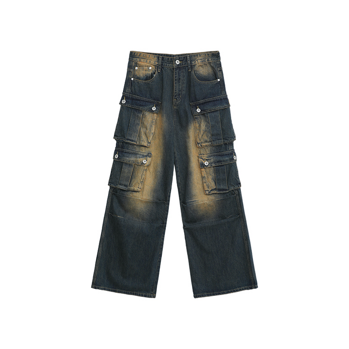 Multi-Pocket Distressed Cargo Jeans