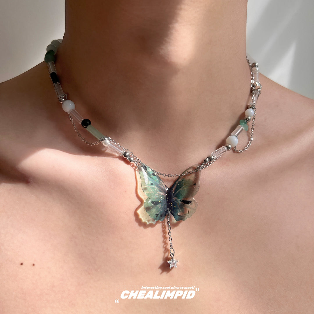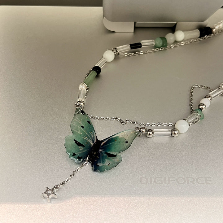 Butterfly Tassel Double Chain Necklace