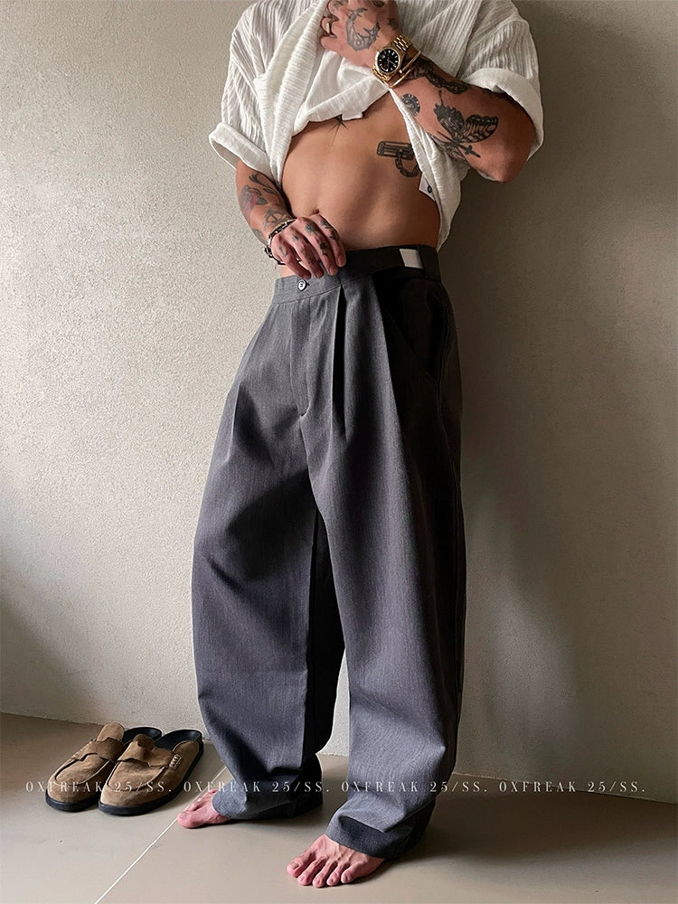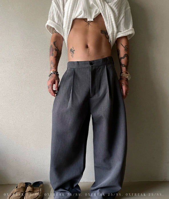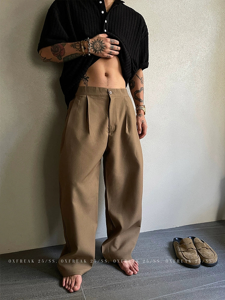 Relaxed Fit Pleated Wide-Leg Casual Pants