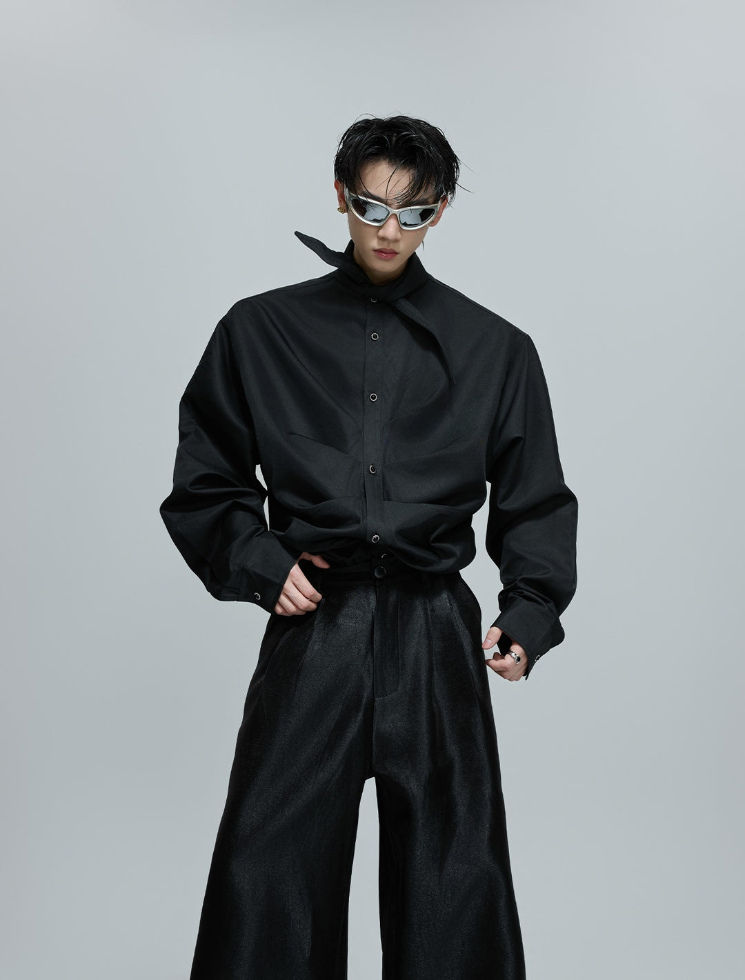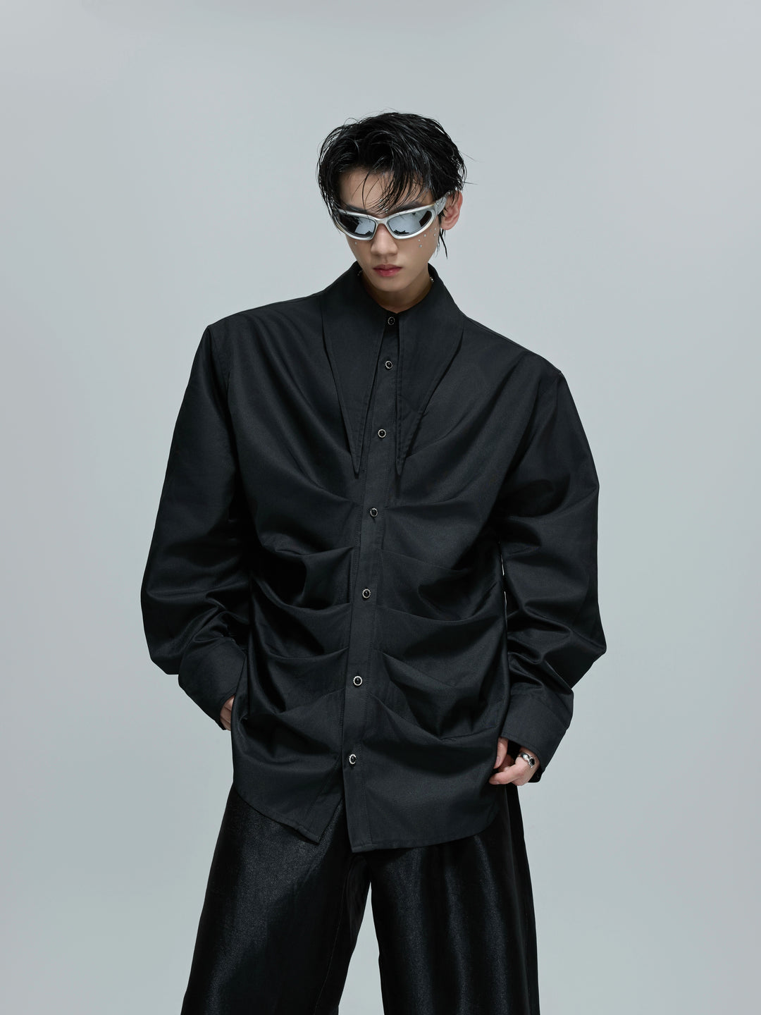 Deconstructed Pleated French Collar Shirt
