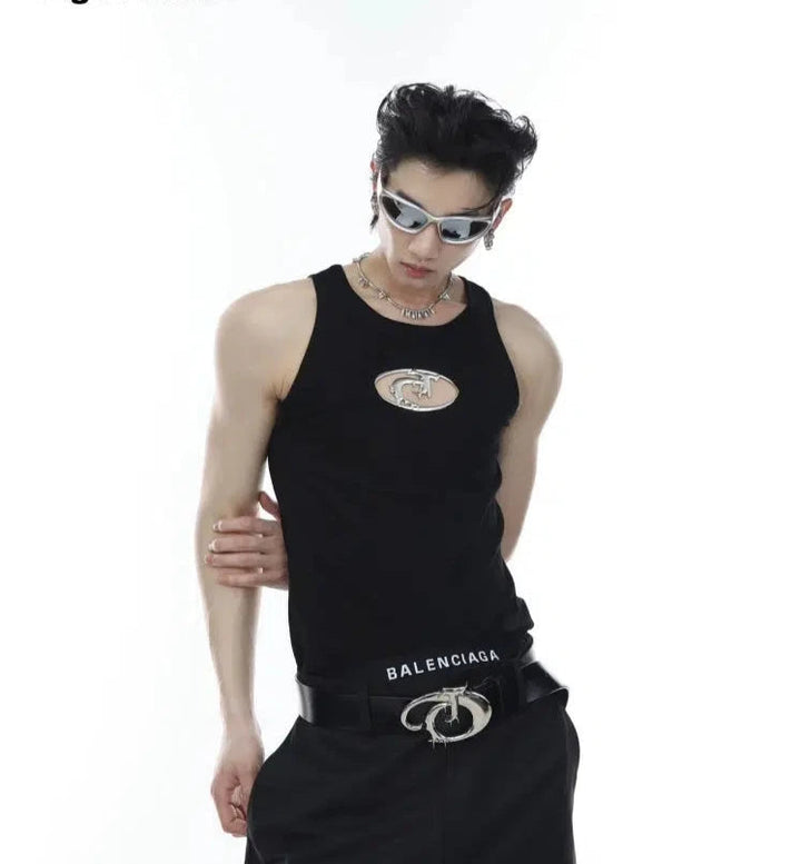 Punk Metal Hollow Pattern Sleeveless Vest
