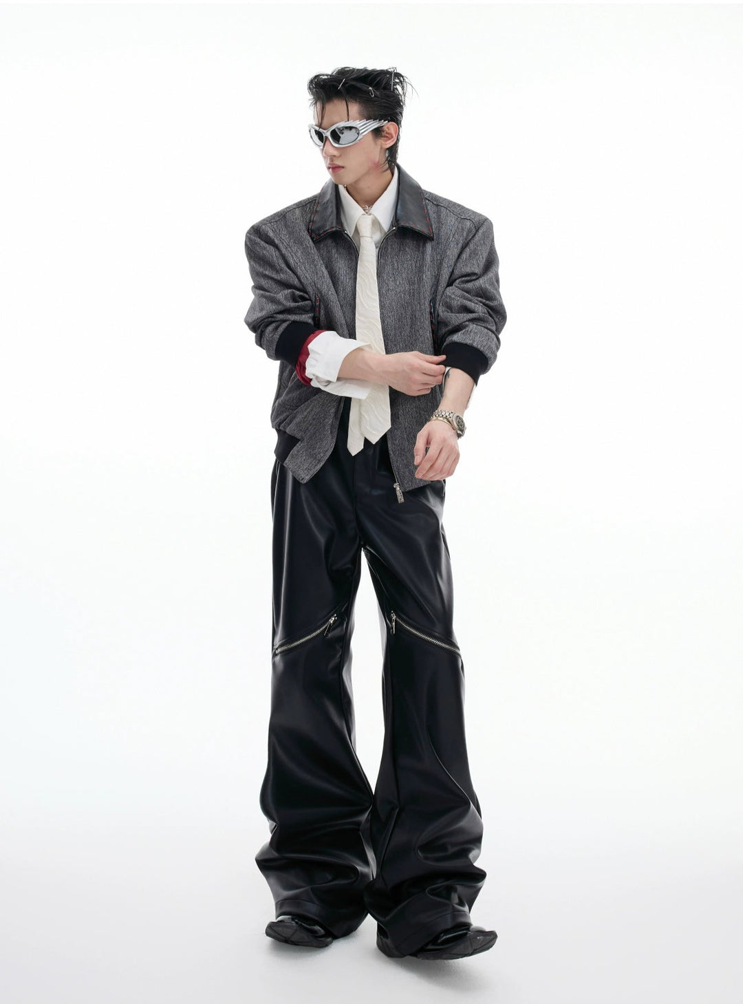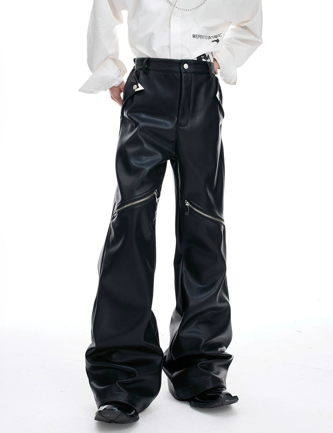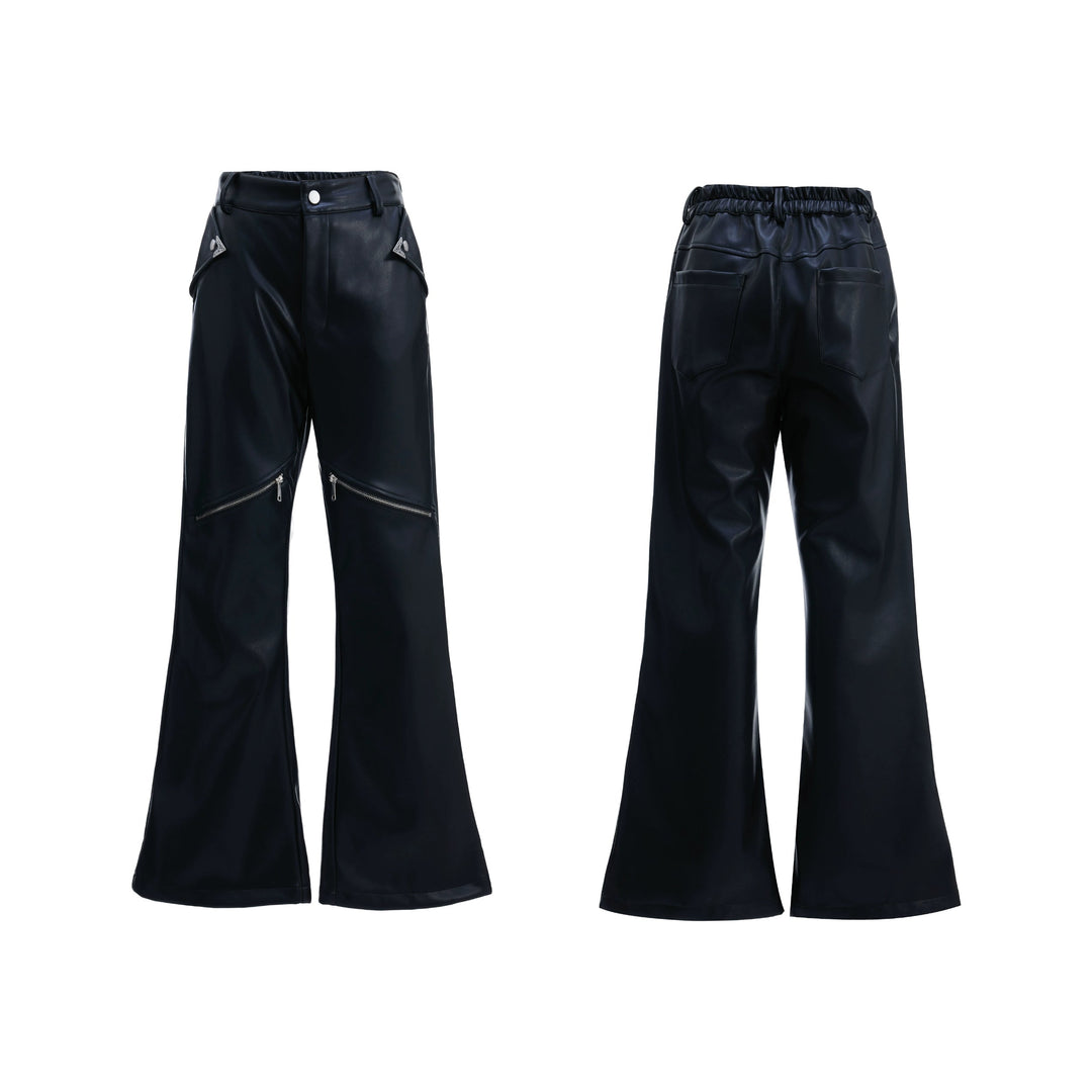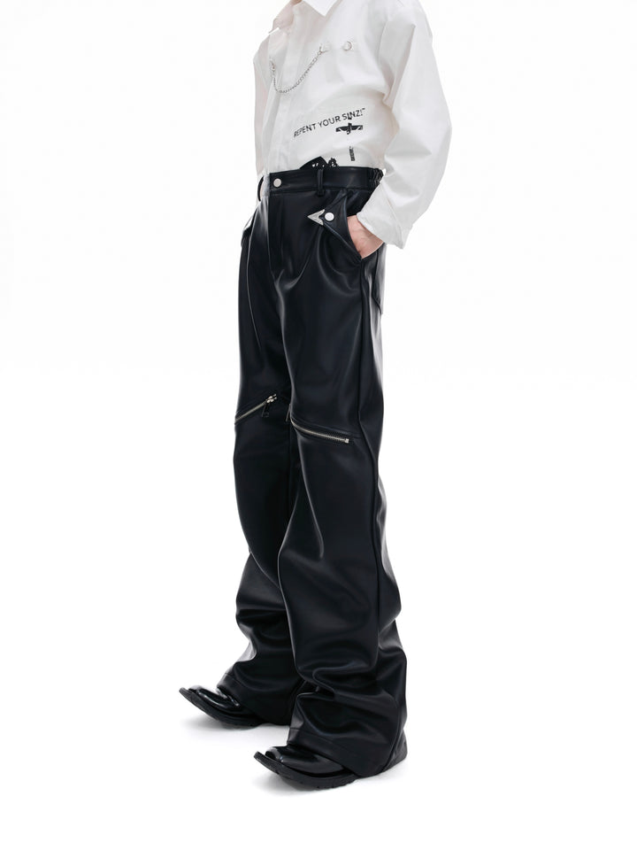 Leather Straight Leg Pants with Zipper
