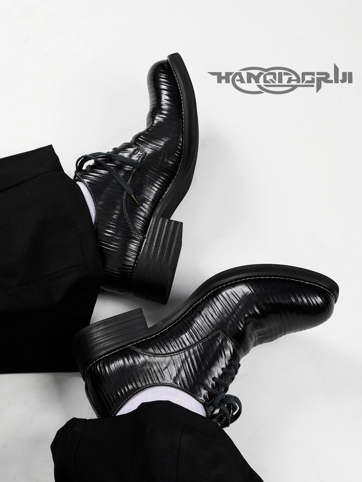 - Handmade wrinkled strip pattern leather craft, unique convex texture feel