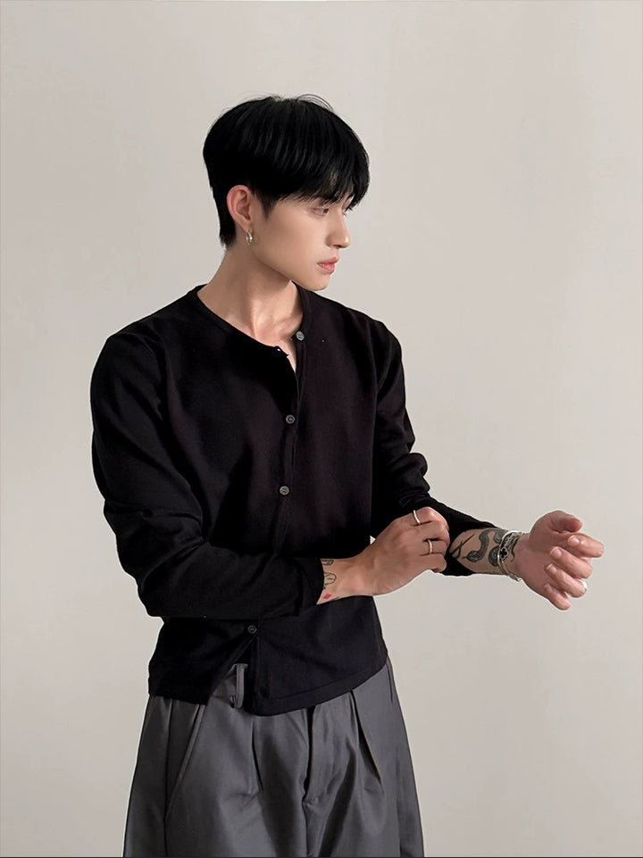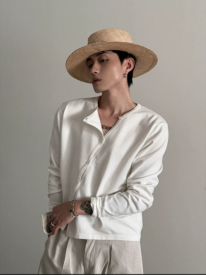 Oblique Placket Knit Sweater