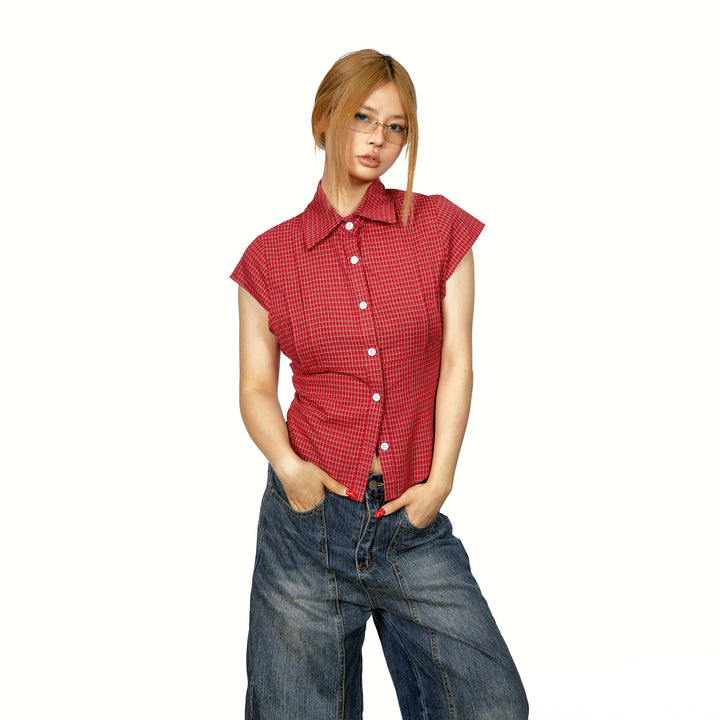 Plaid Short Sleeve Button-Up Crop Shirt