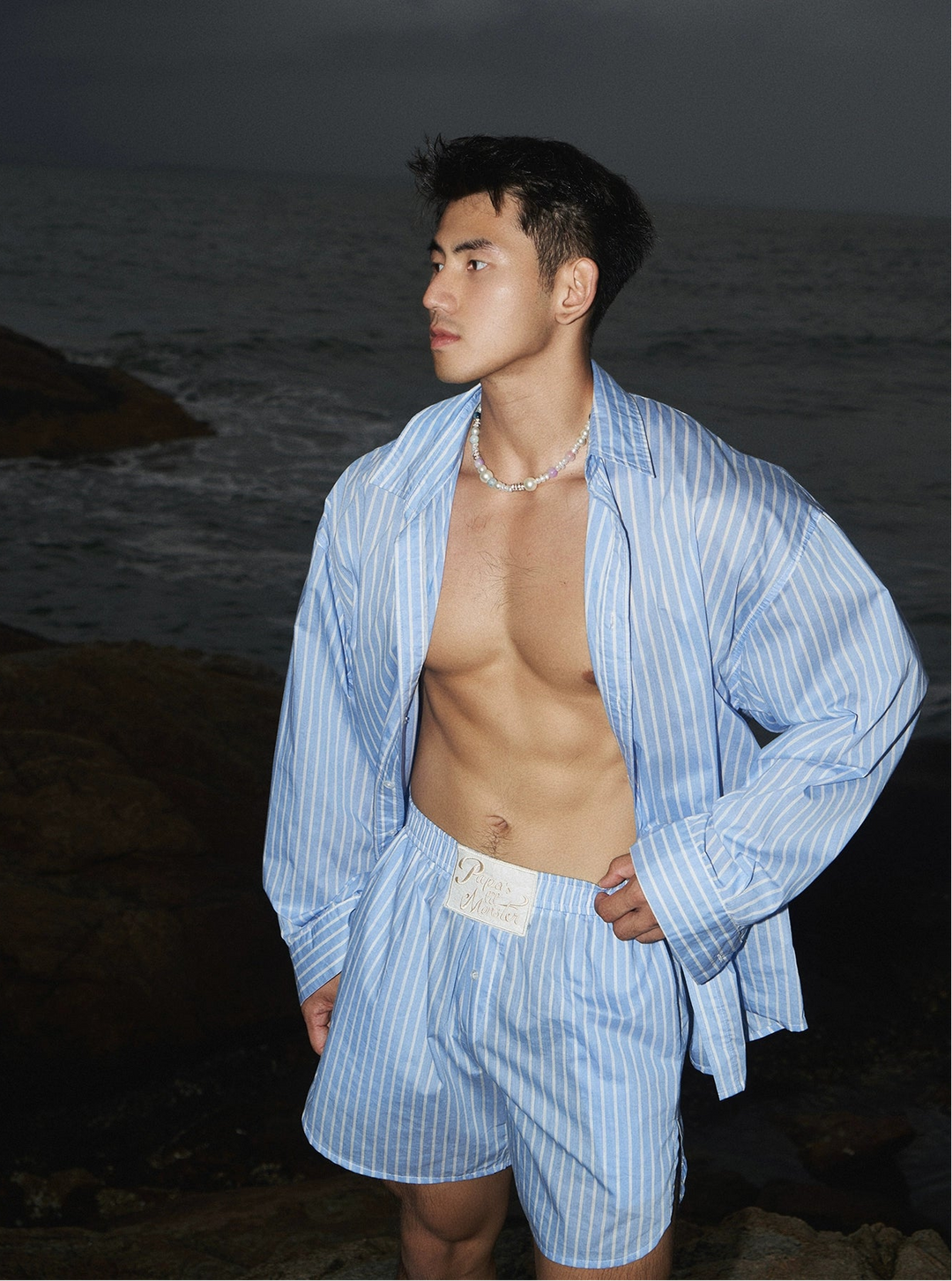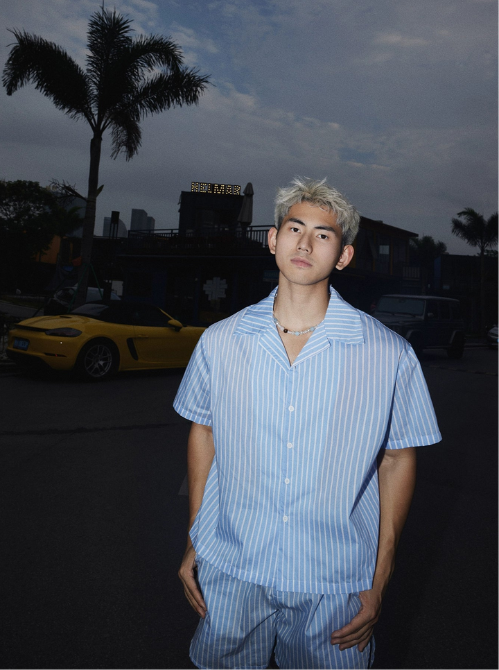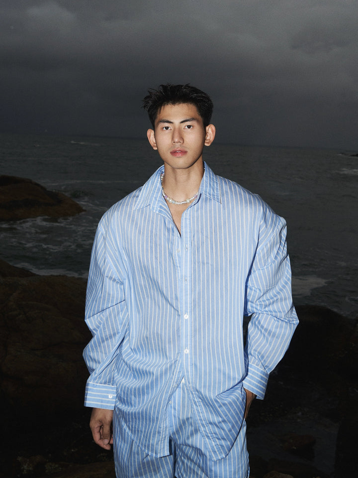 Embroidered Button-Up Striped Shirt