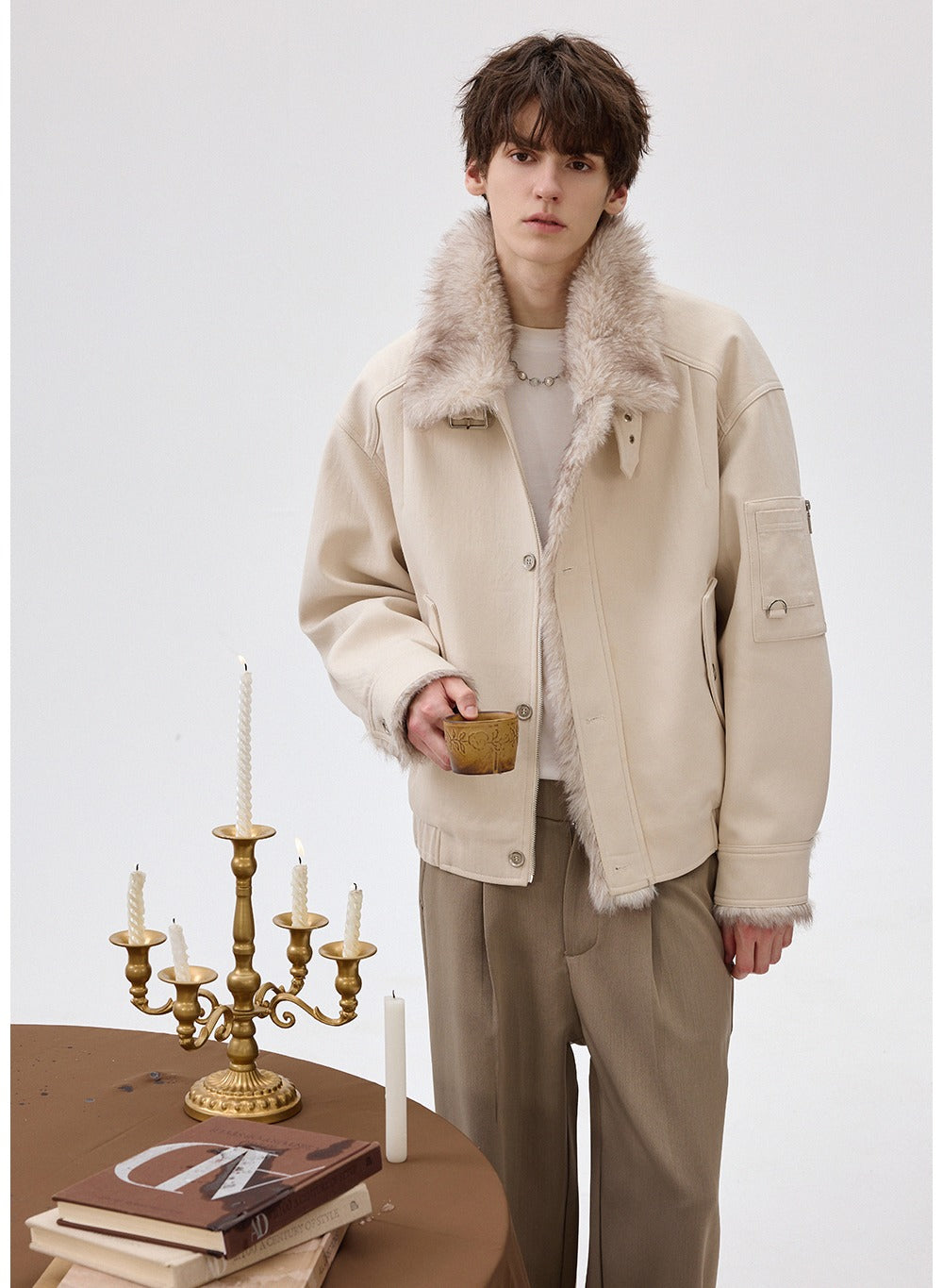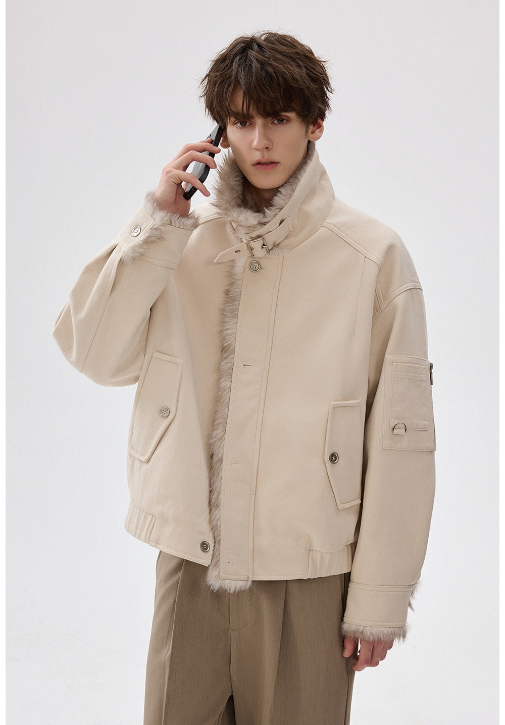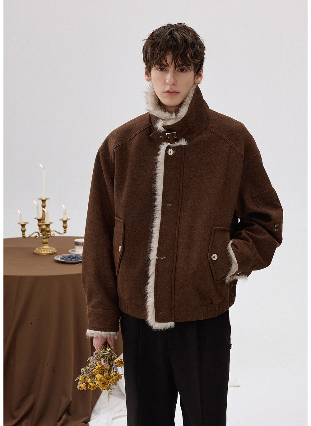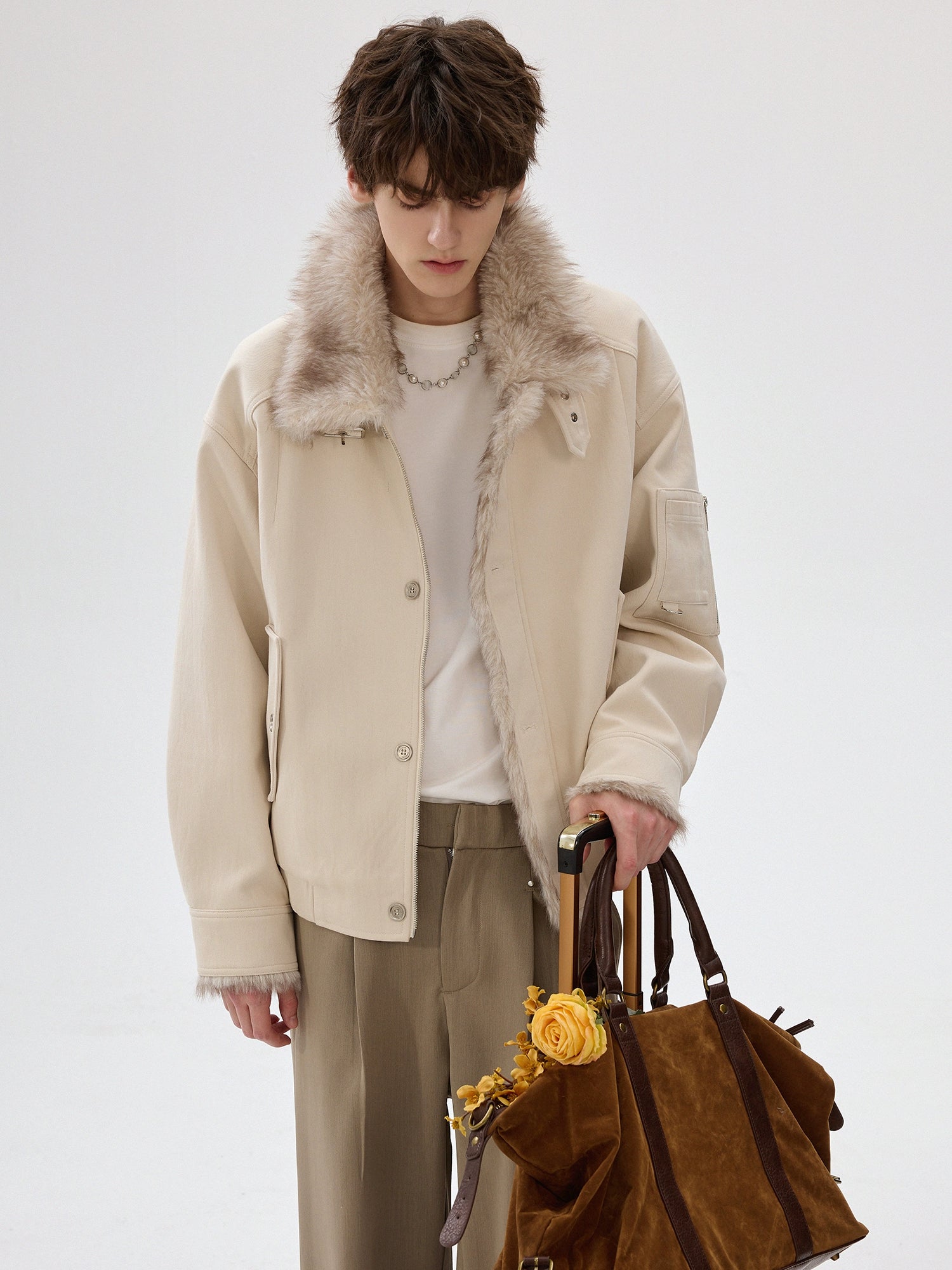 Faux Fur Lapel Wool Jacket