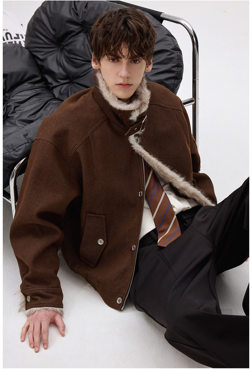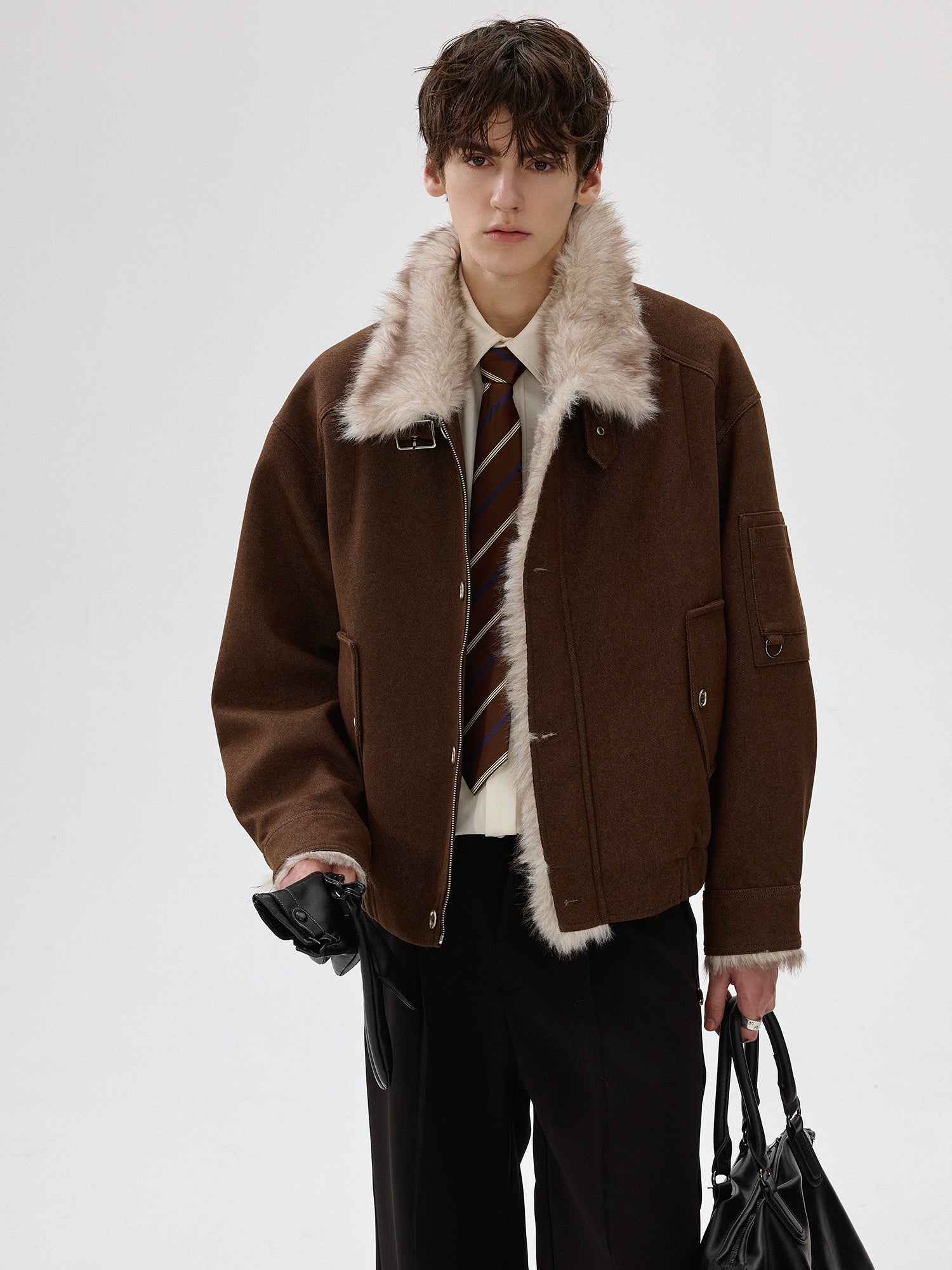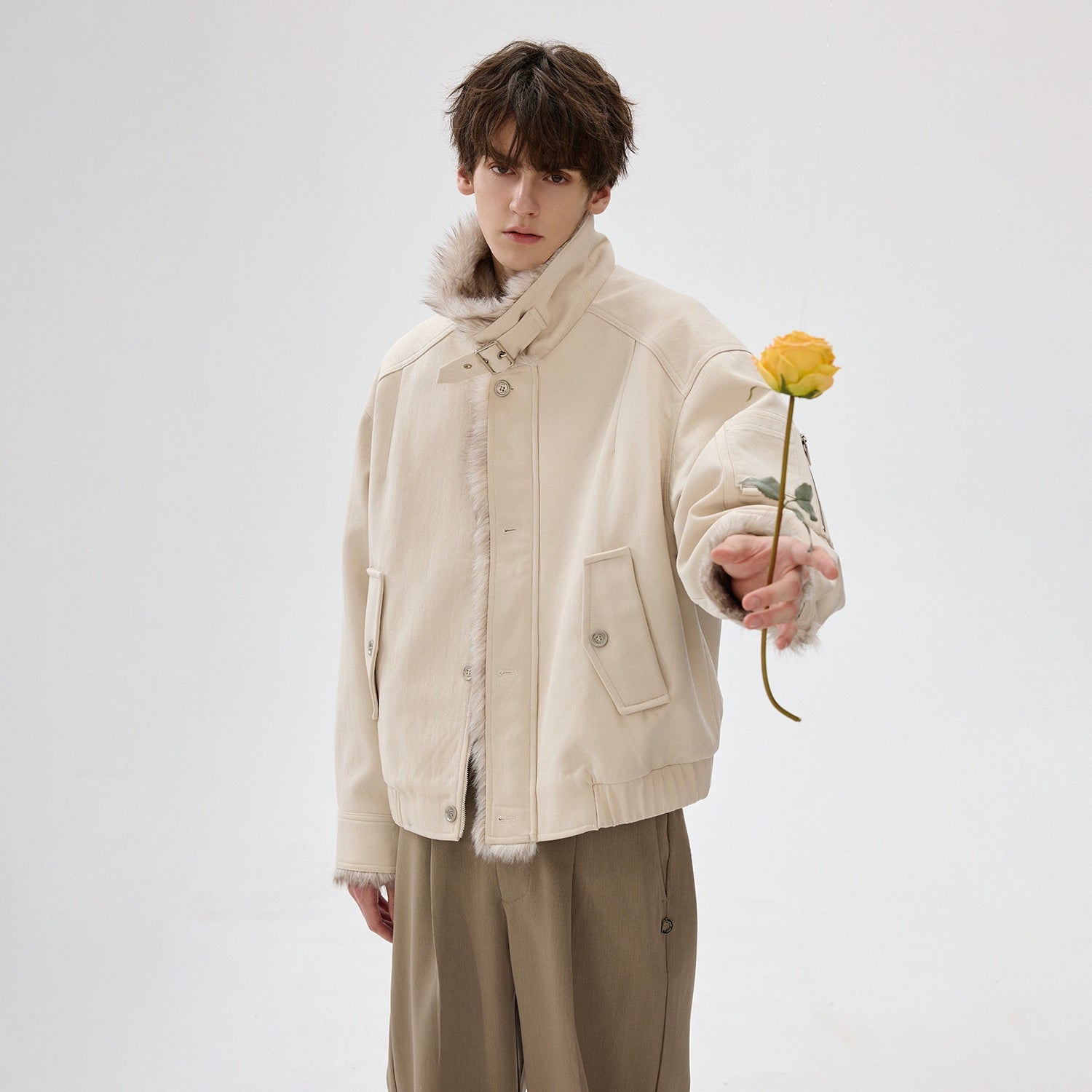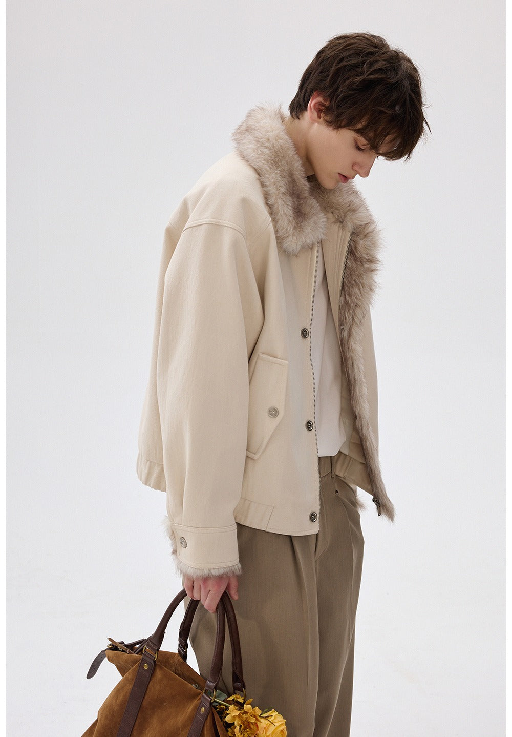 Faux Fur Lapel Wool Jacket