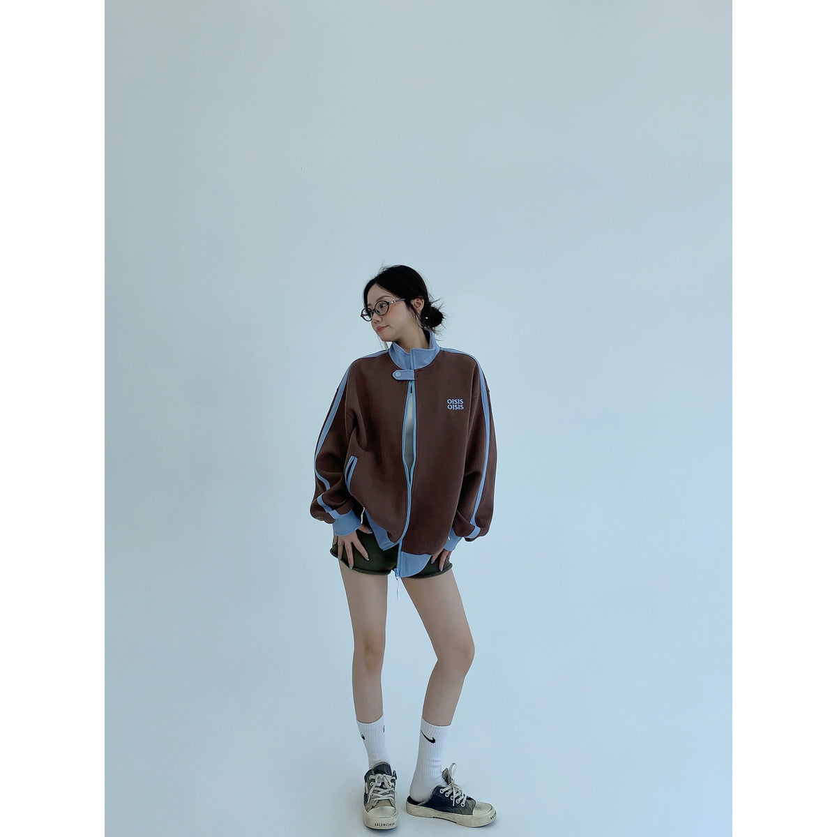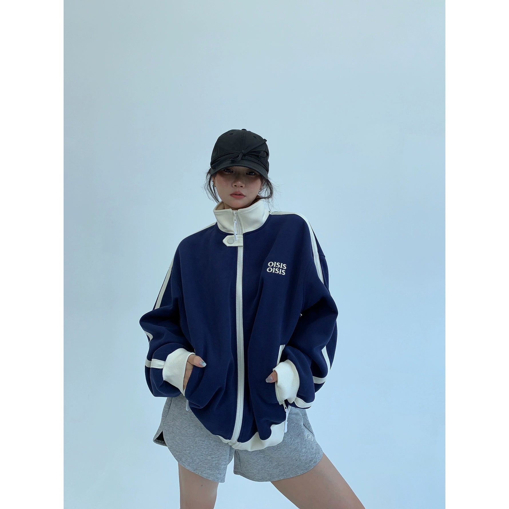 Contrast Stitch Stand Collar Zip Jacket