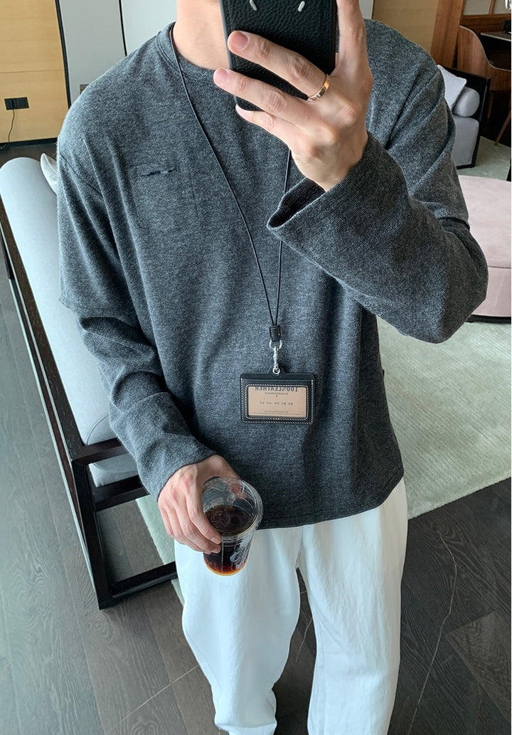 Lightweight Knit Long Sleeve Crewneck Pullover