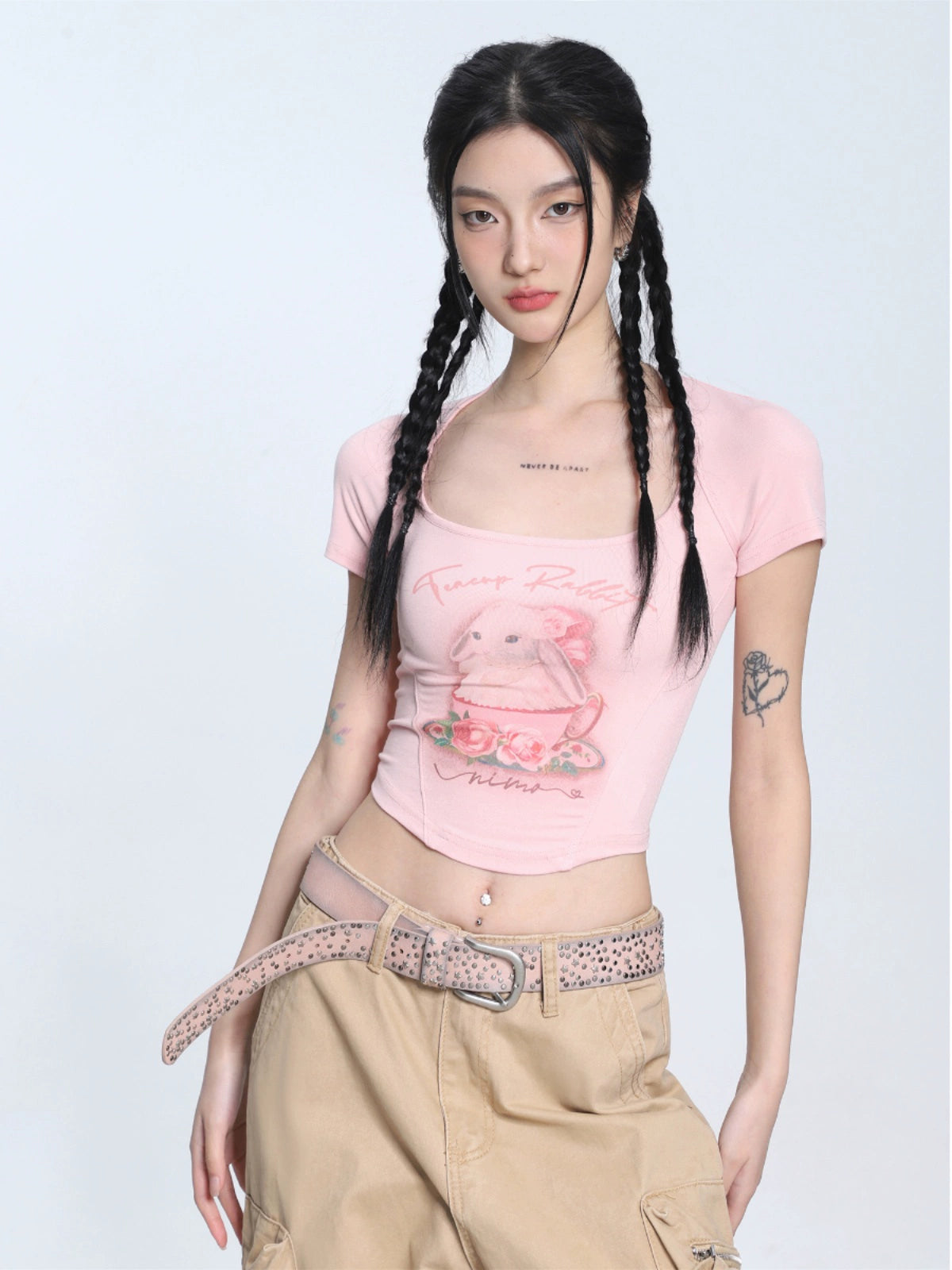 Diamond Graphic Loose Cotton Short Sleeve T-Shirt