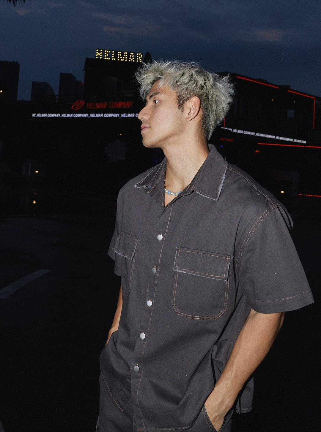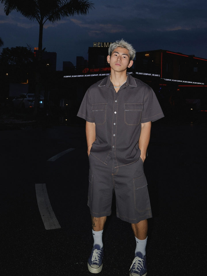 Cotton Denim Cargo Short Sleeve Shirt and Pants