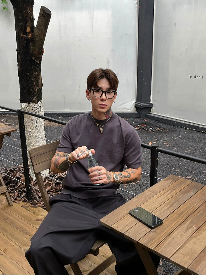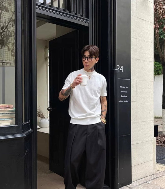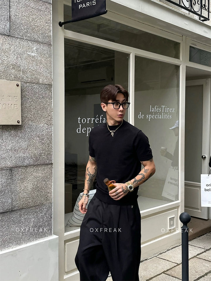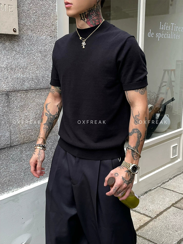 Velvet Elastic Straight Shoulder T-shirt