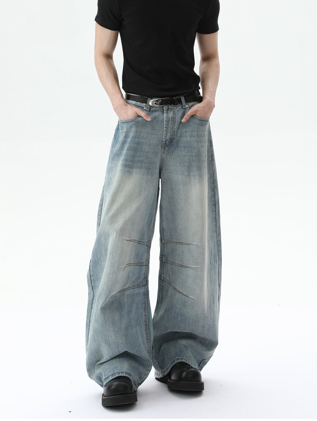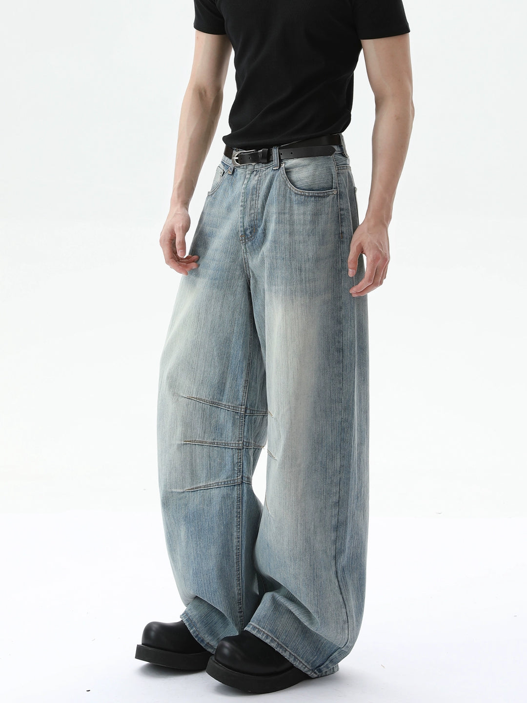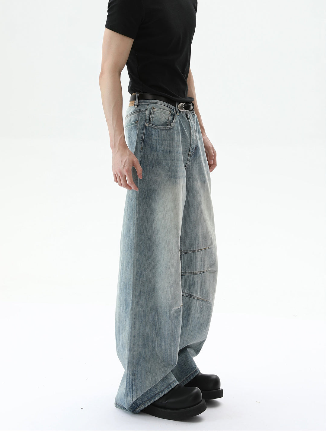 Wide-Leg Deconstructed Bamboo Textured Jeans