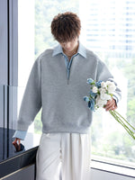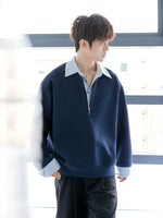 Lapel zzip-up Pullover