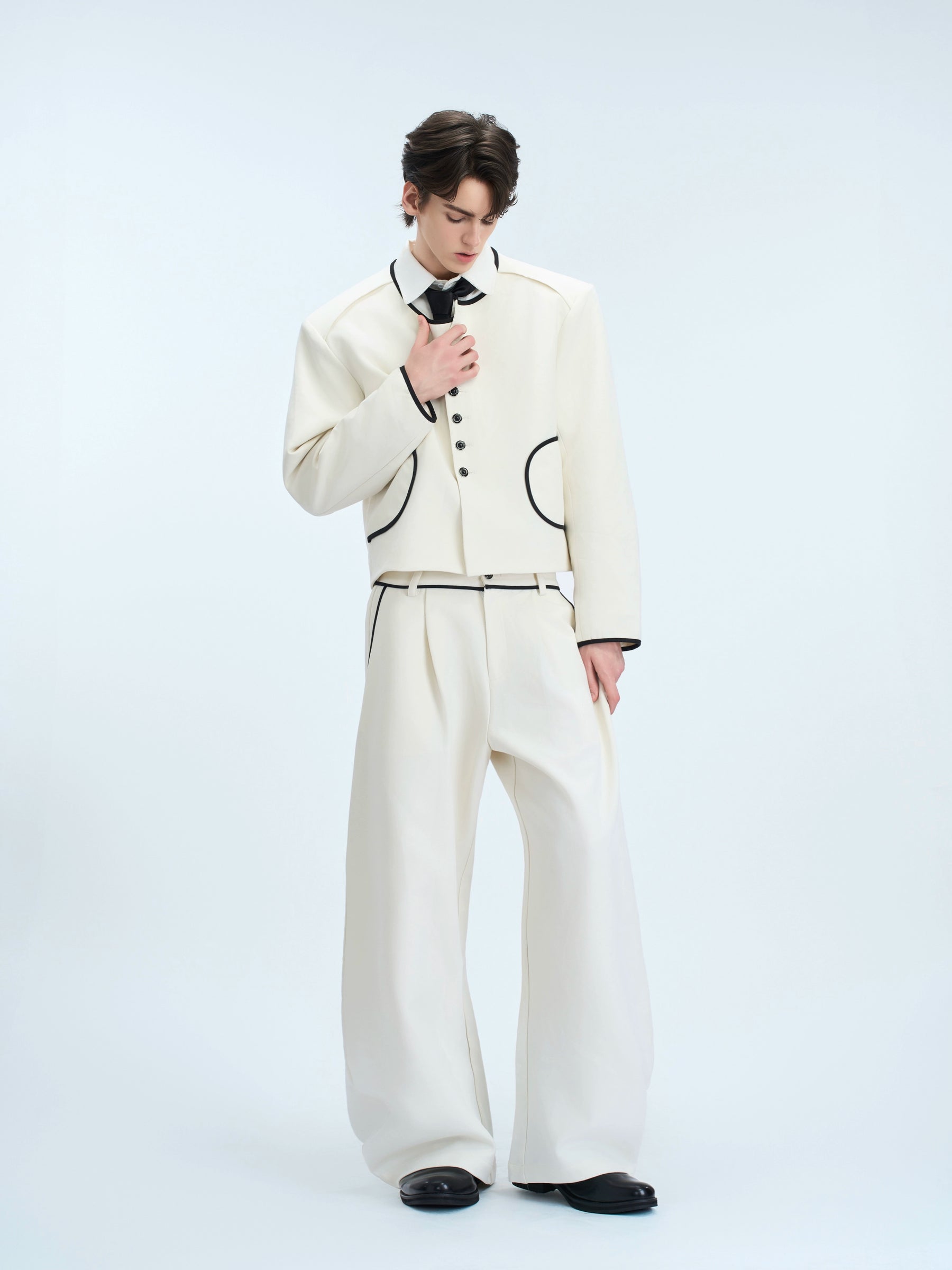 Contrast Trim Collarless Jacket and Pants (Sold Separately)