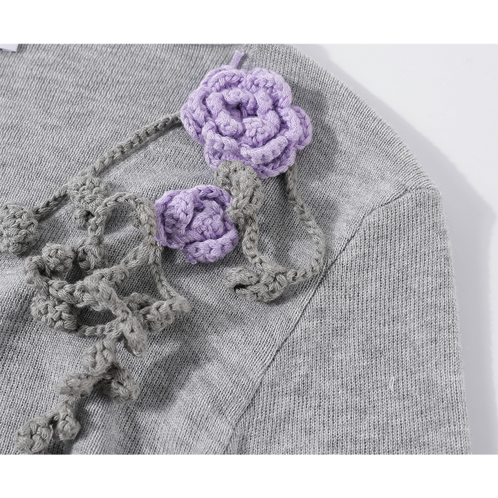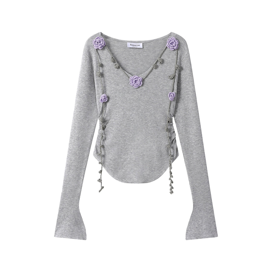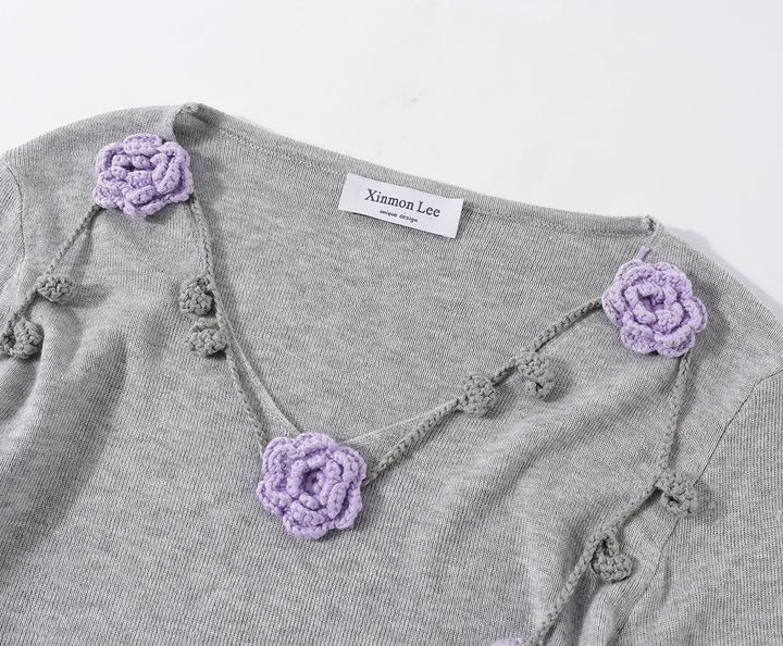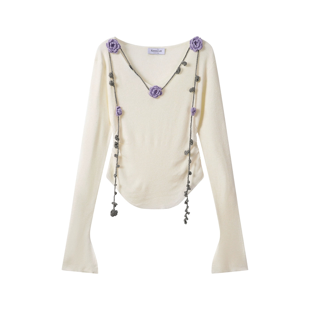 Floral Accents V-neck Knitted Top