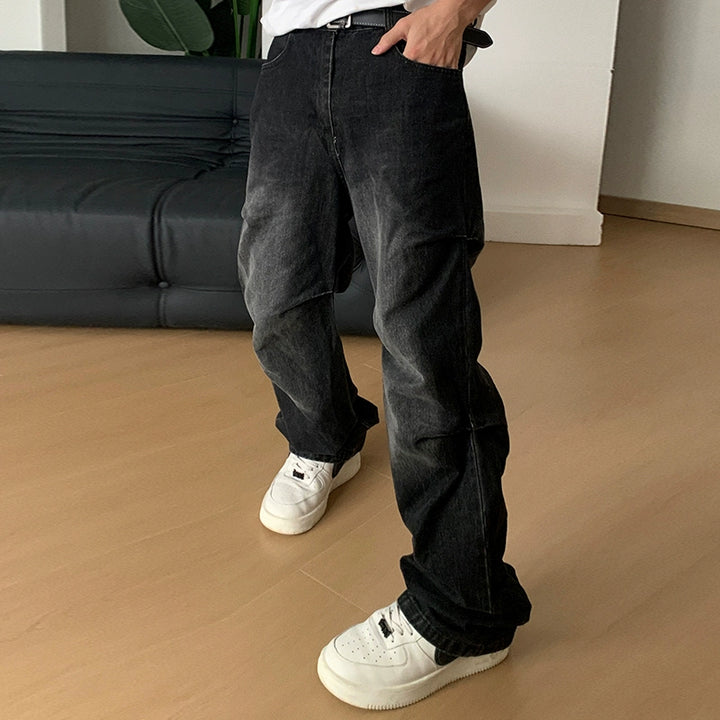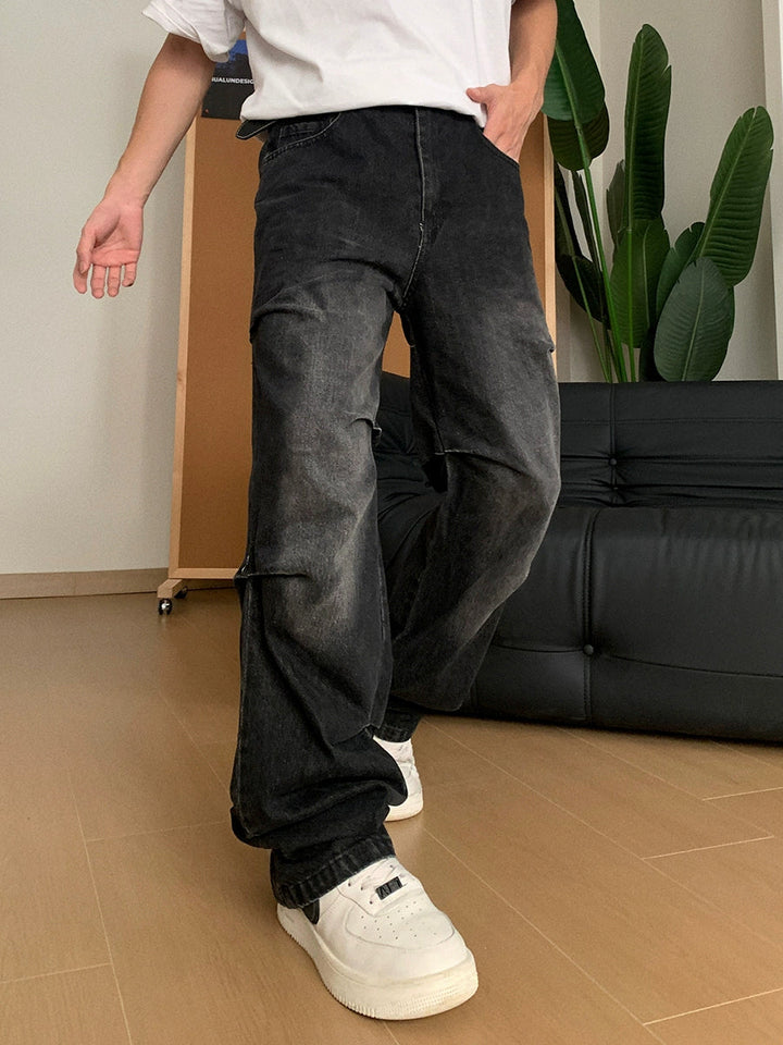 Pleated Washed Loose Fit Jeans