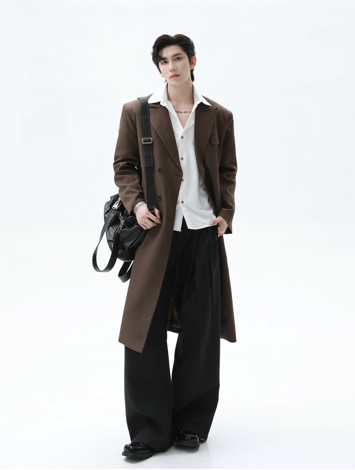 Double-Breasted Long Trench Coat