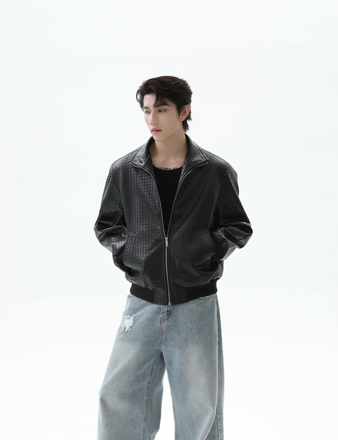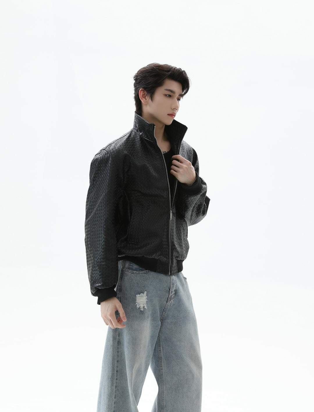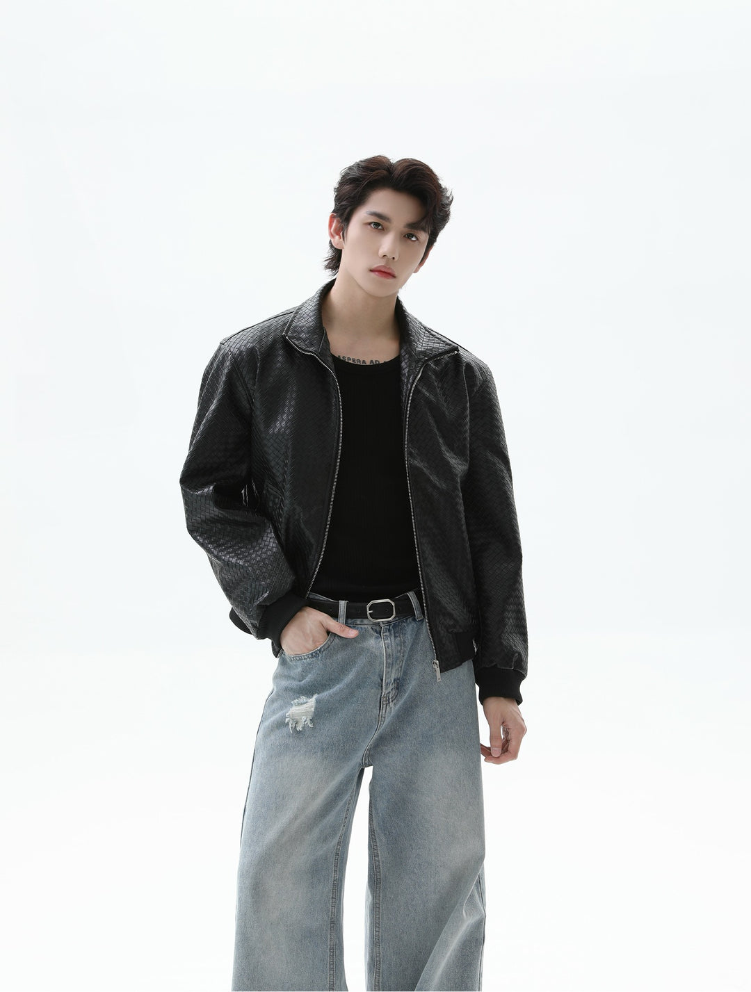 Crocodile-print Leather Jacket