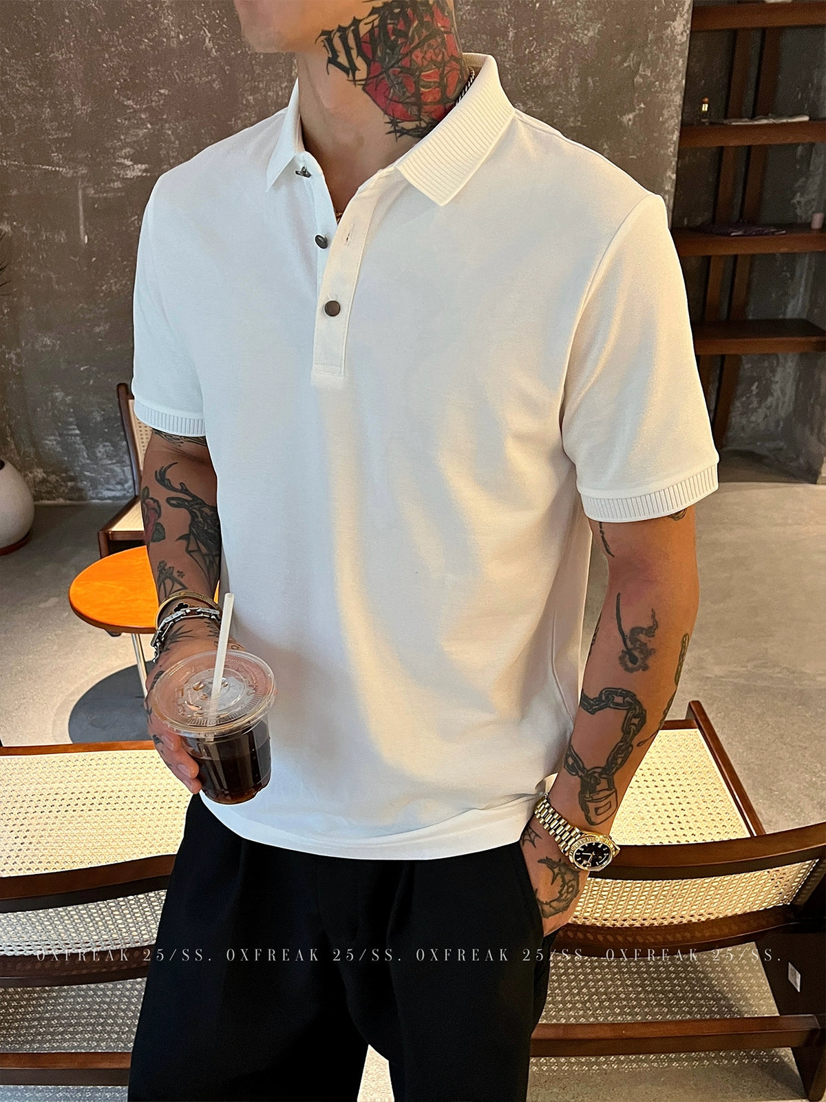 Double-Sided Knit Short Sleeve Polo Shirt