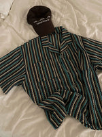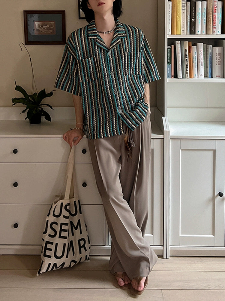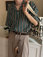 Striped Short Sleeve Cuban Collar Shirt