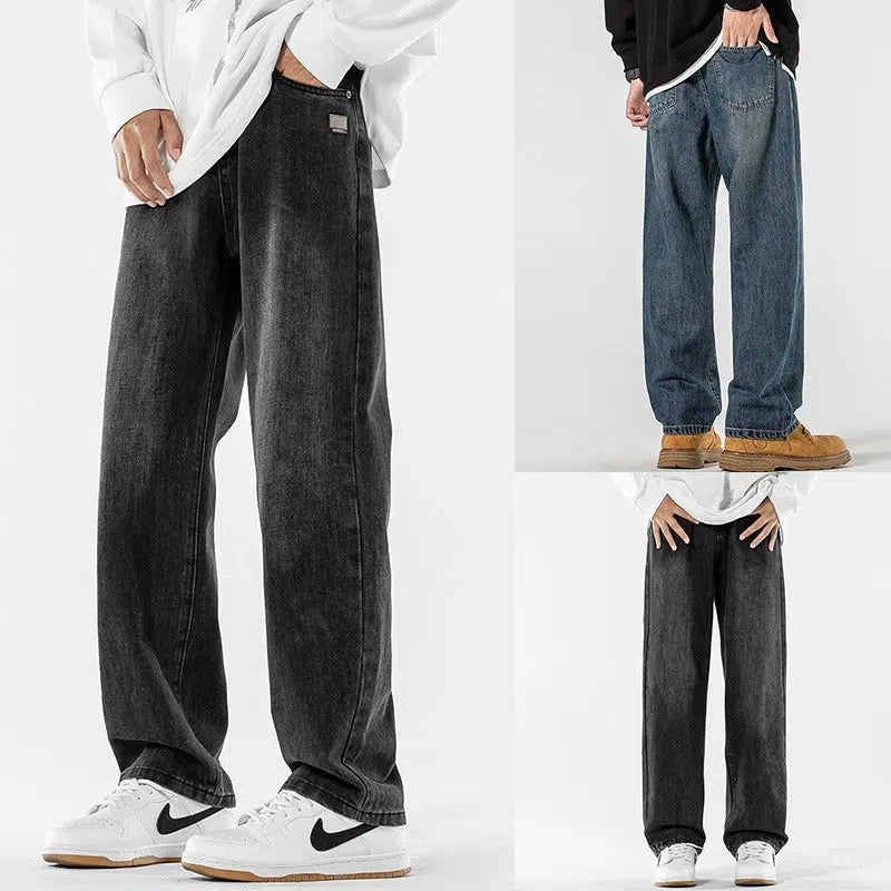 Washed Retro Straight-leg Jeans