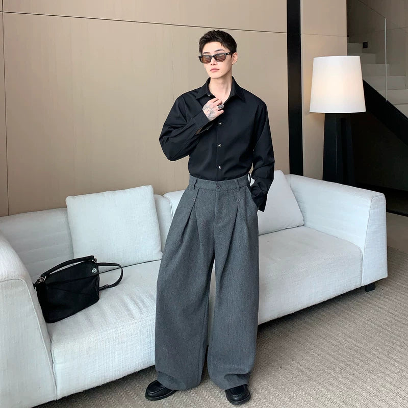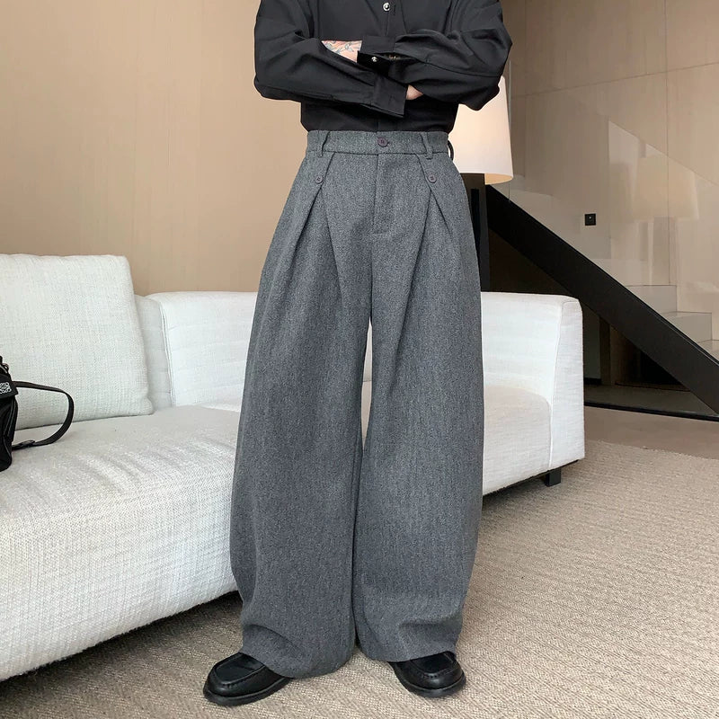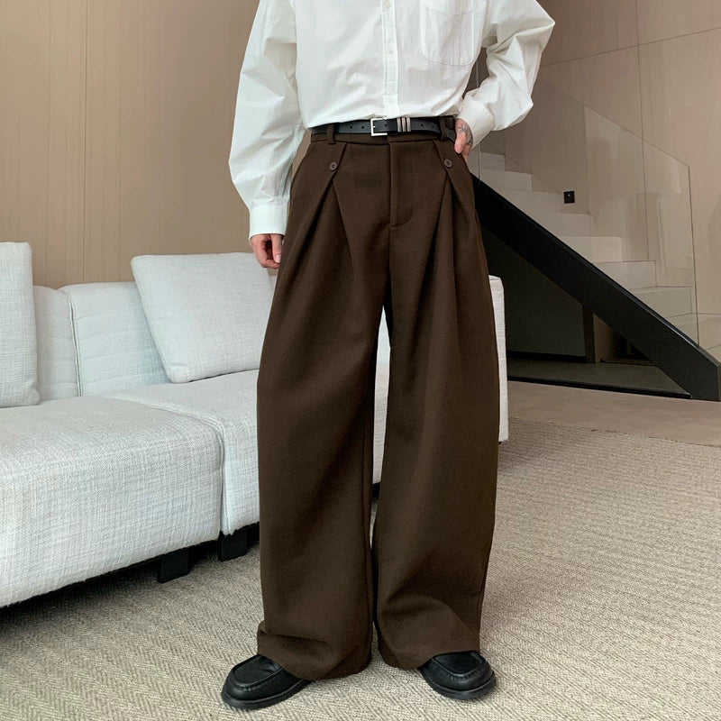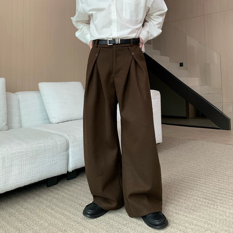 Pleated Wool Wide-Leg Straight Pants