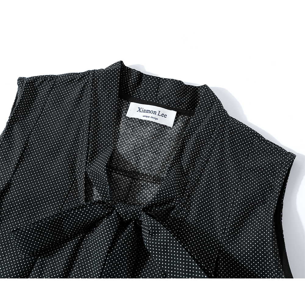 Embroidered Polka Dot Bow Tie Sleeveless Top