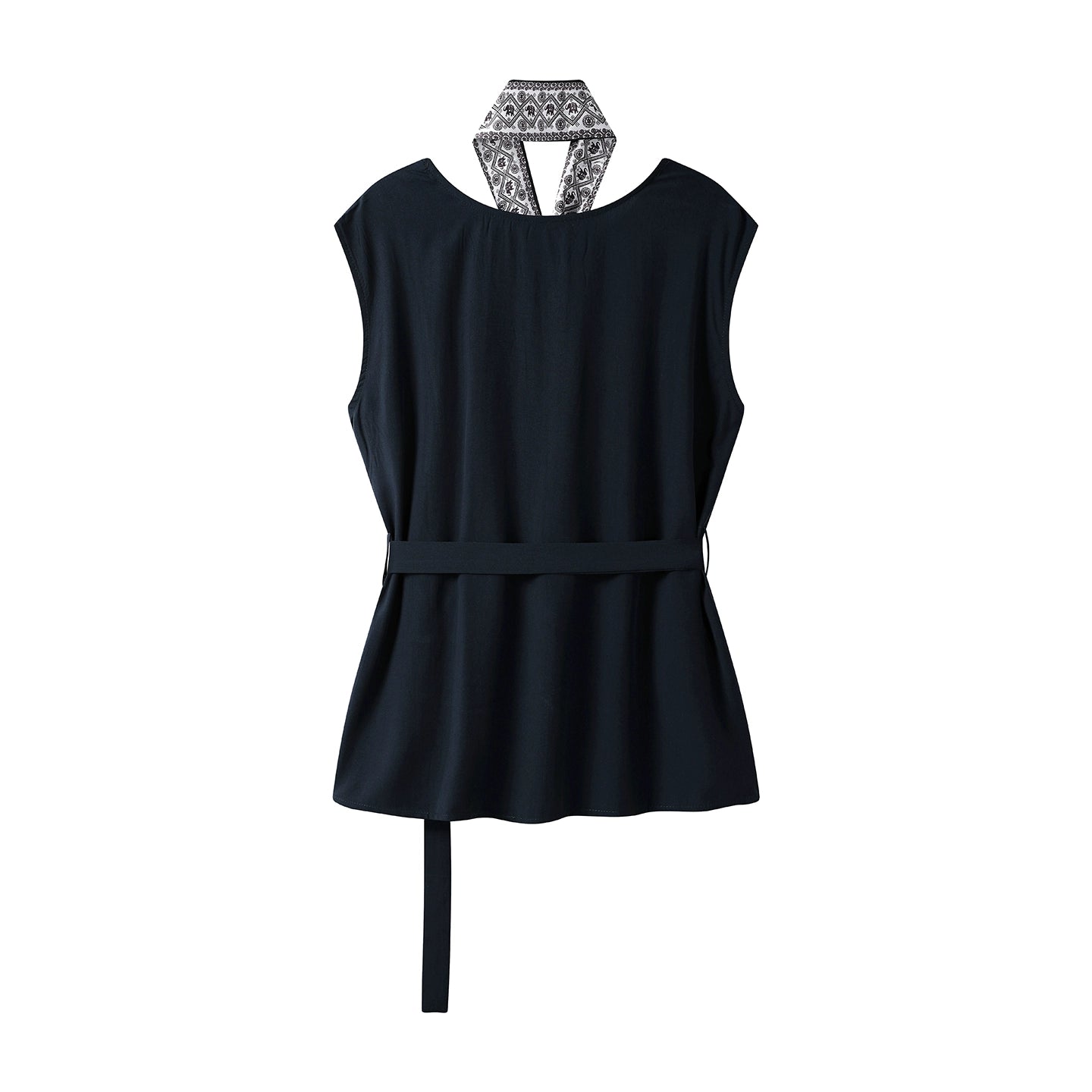 Sleeveless Belted Vest Shirt with Scarf