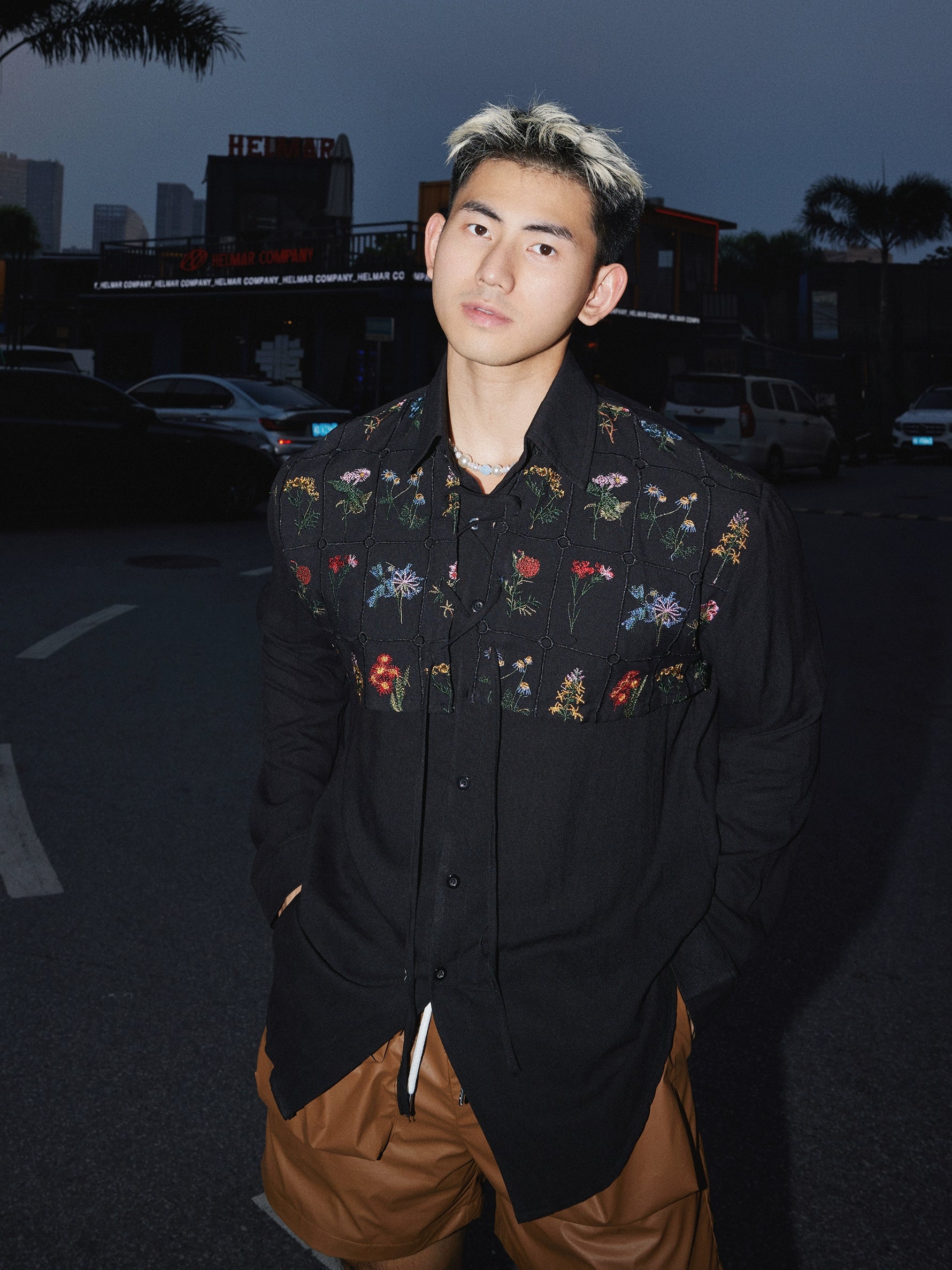 Long Sleeve Embroidered Floral Shirt