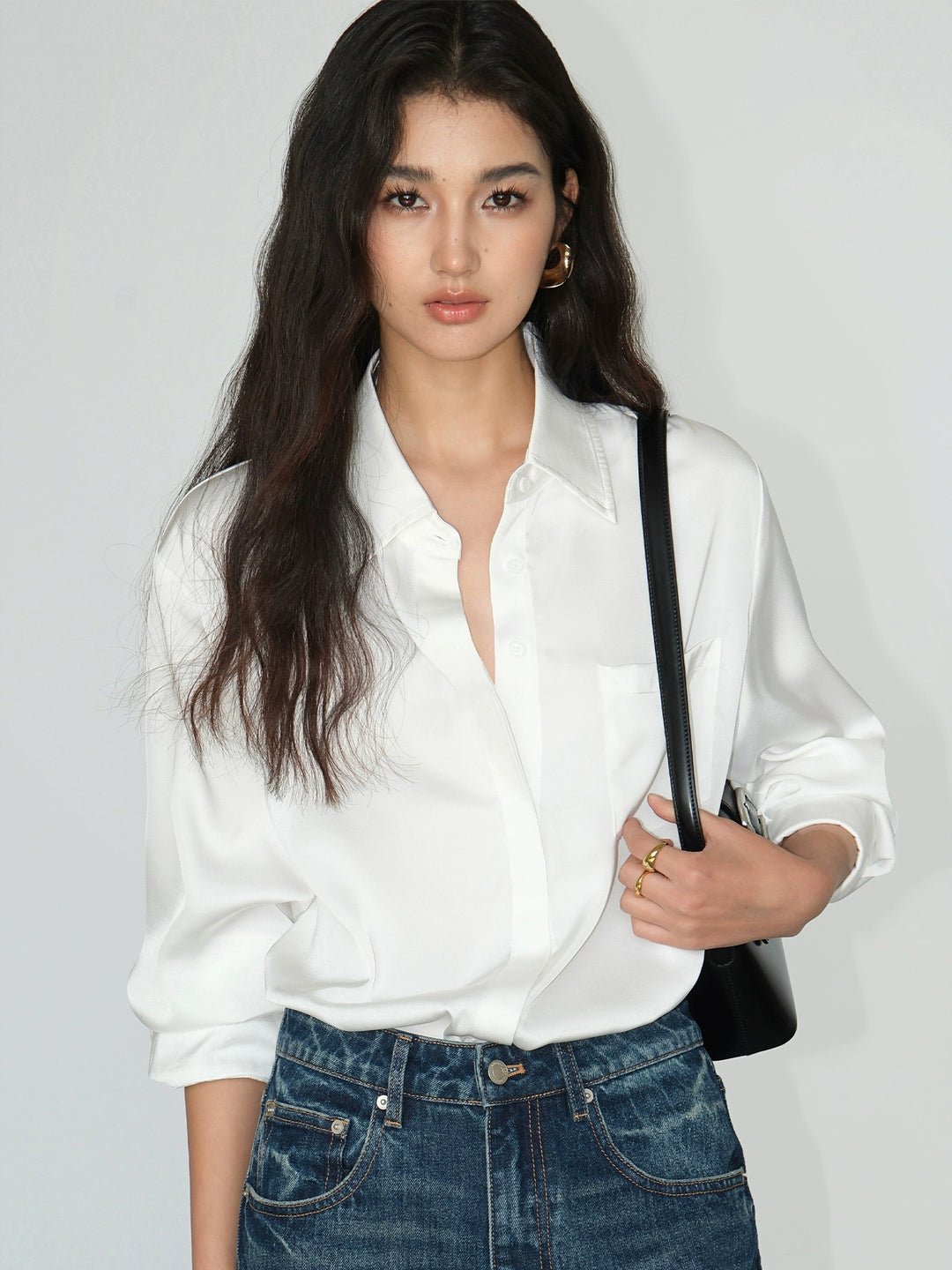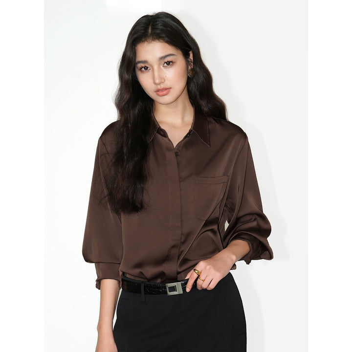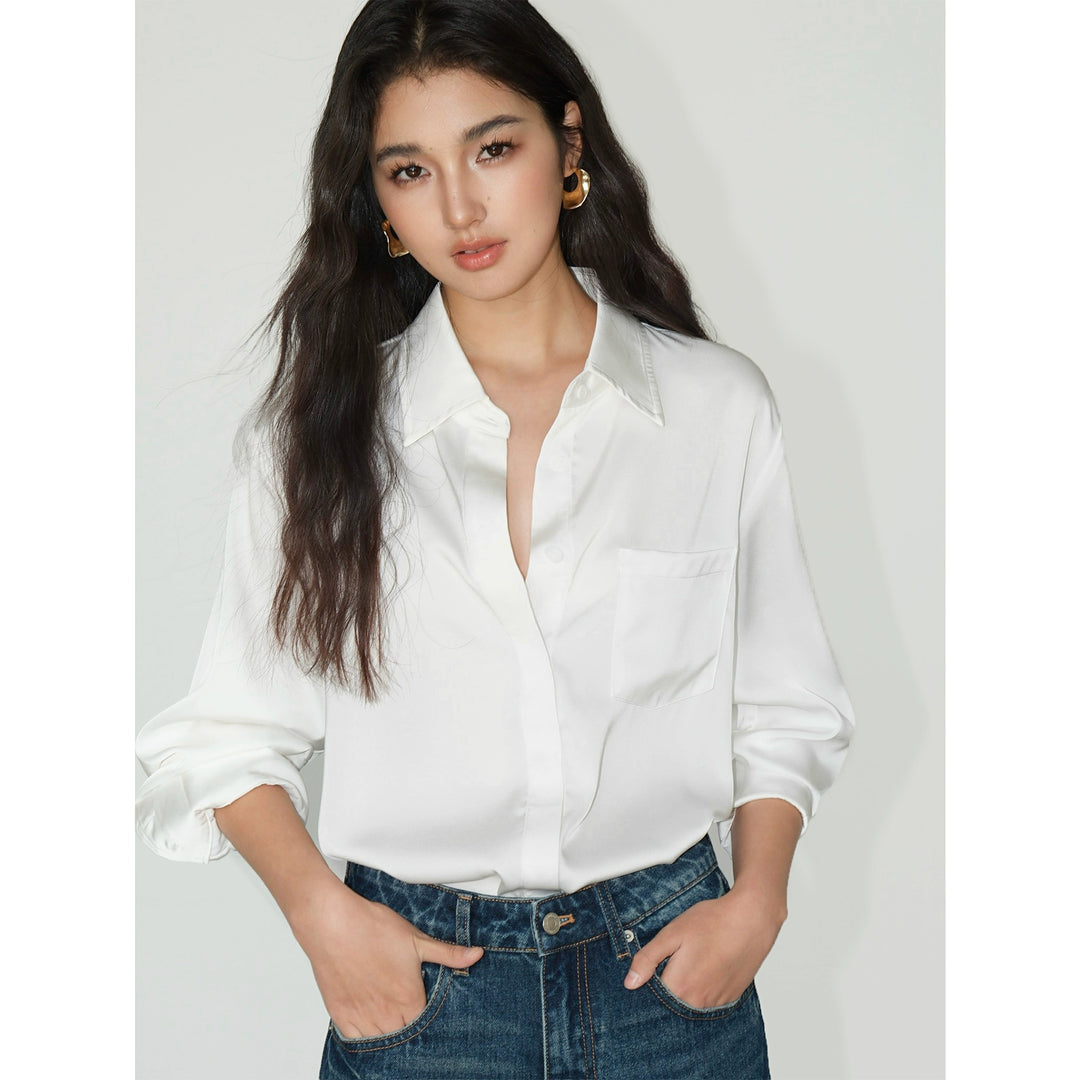 Satin Long Sleeve Loose Fit Shirt