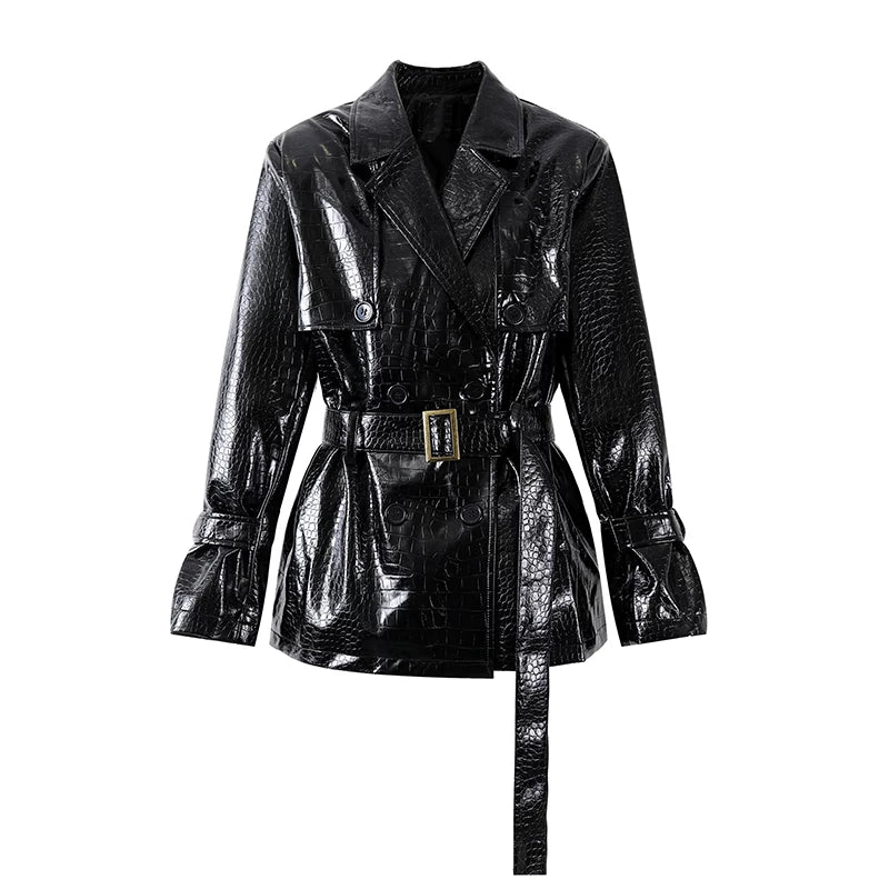 Textured Leather Double-Breasted Jacket