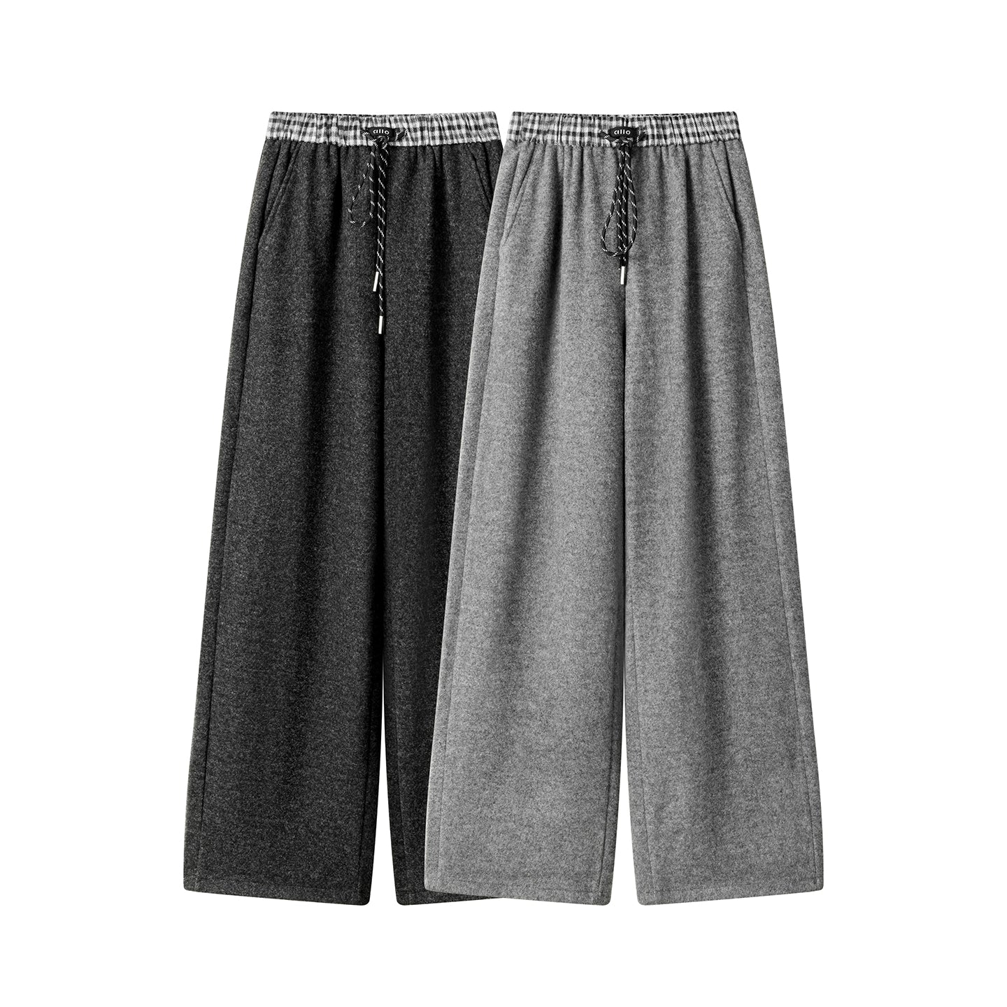 Fleece-Lined Wide-Leg Casual Cropped Pants