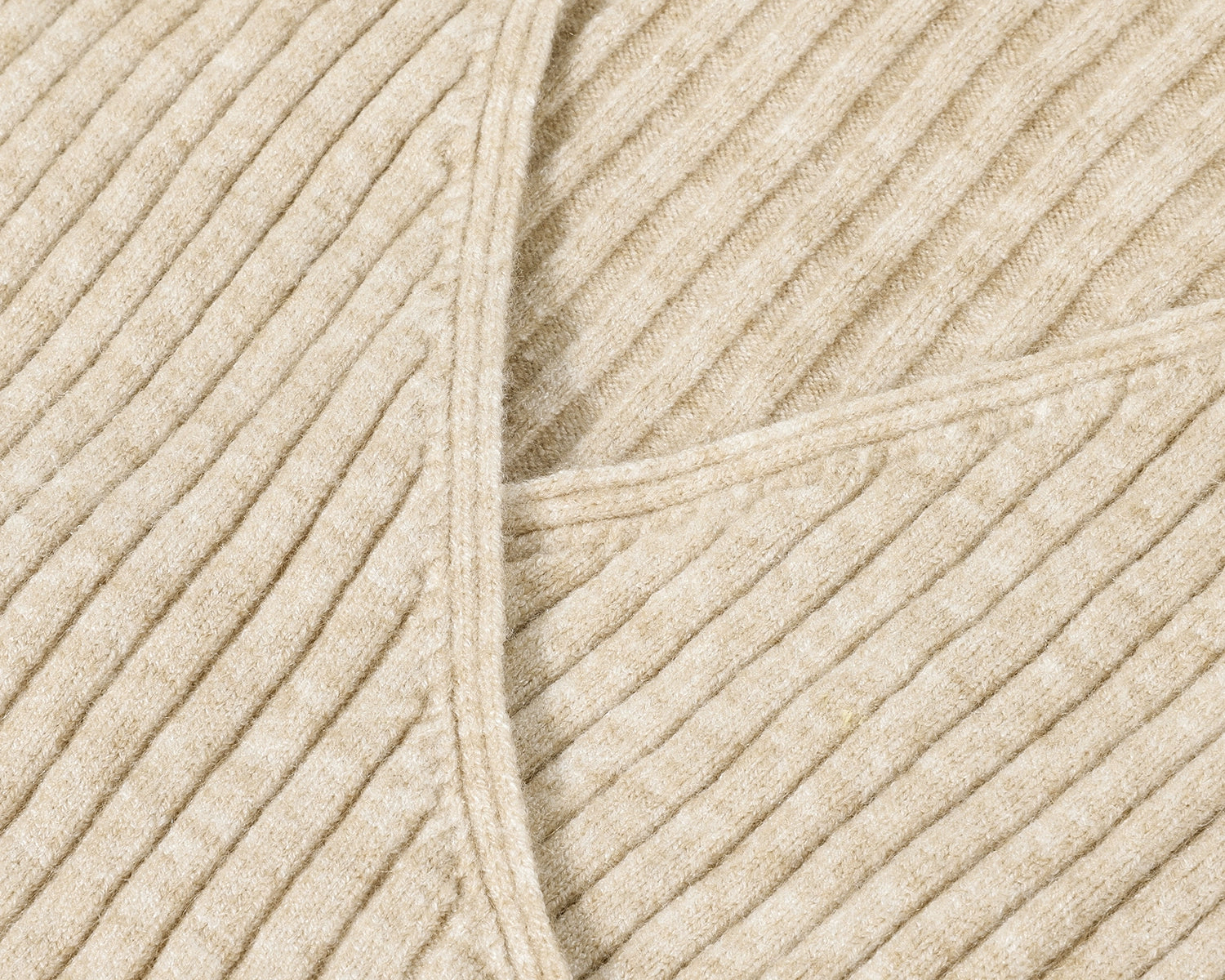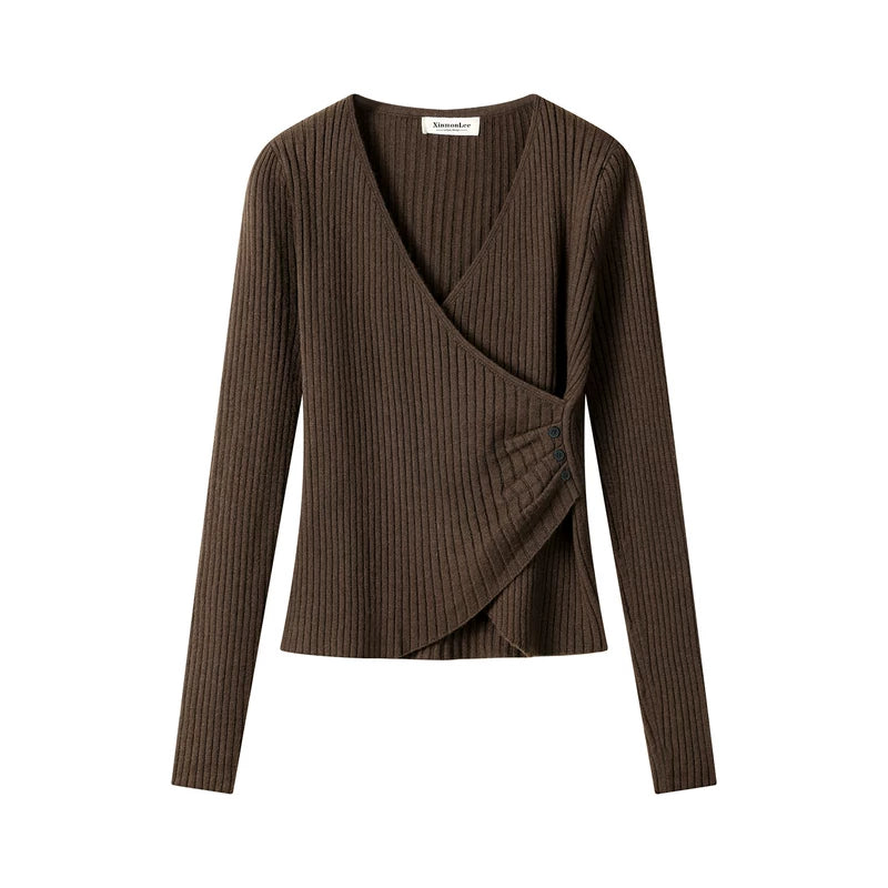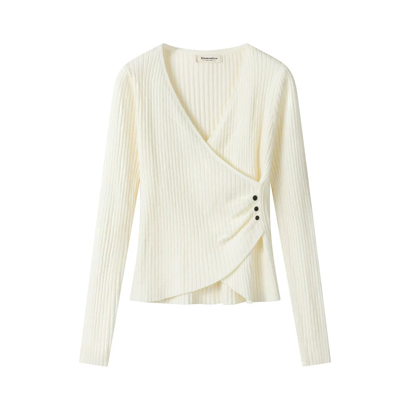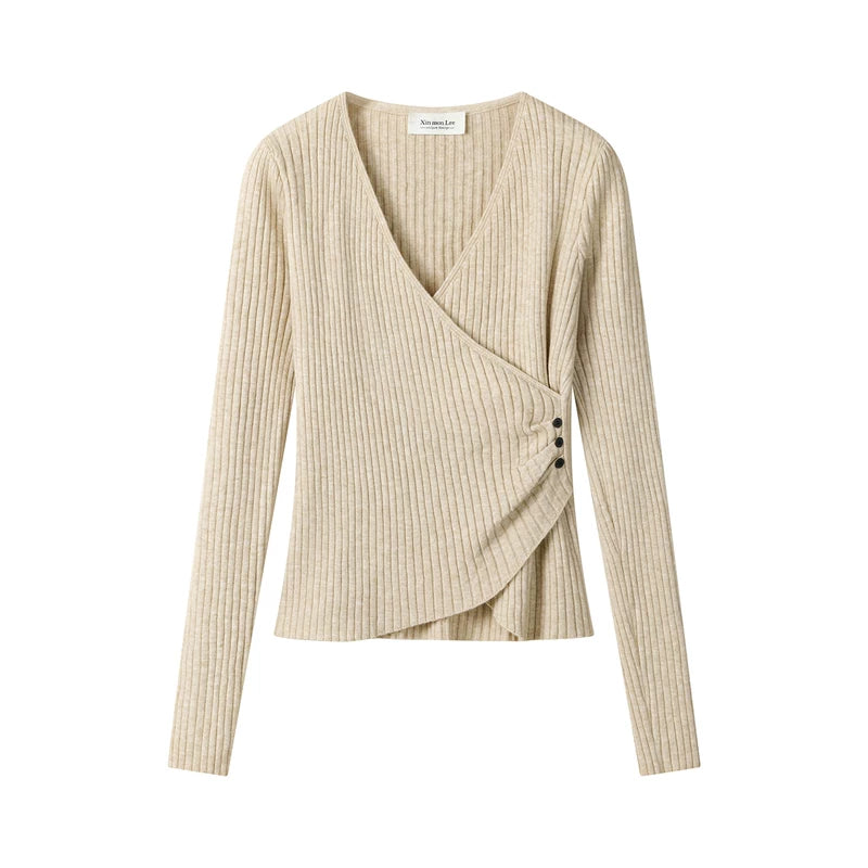 Ribbed V-Neck Wrap Knit Long Sleeve Top