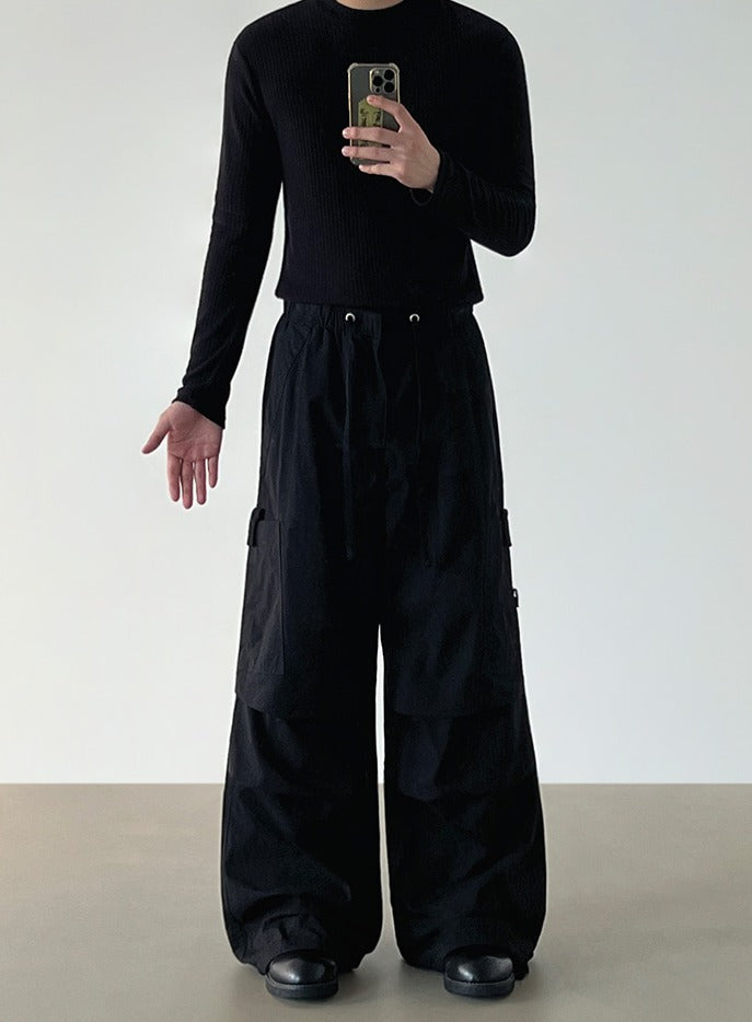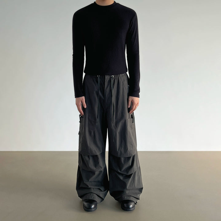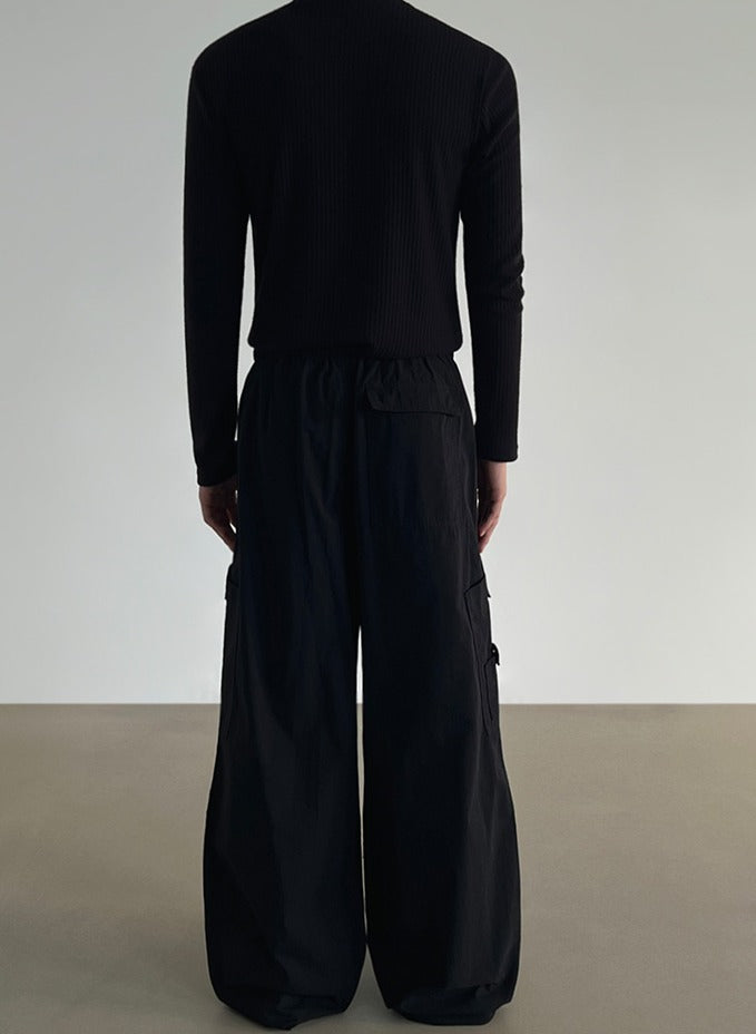 Pleated Wide-Leg Cargo Pants
