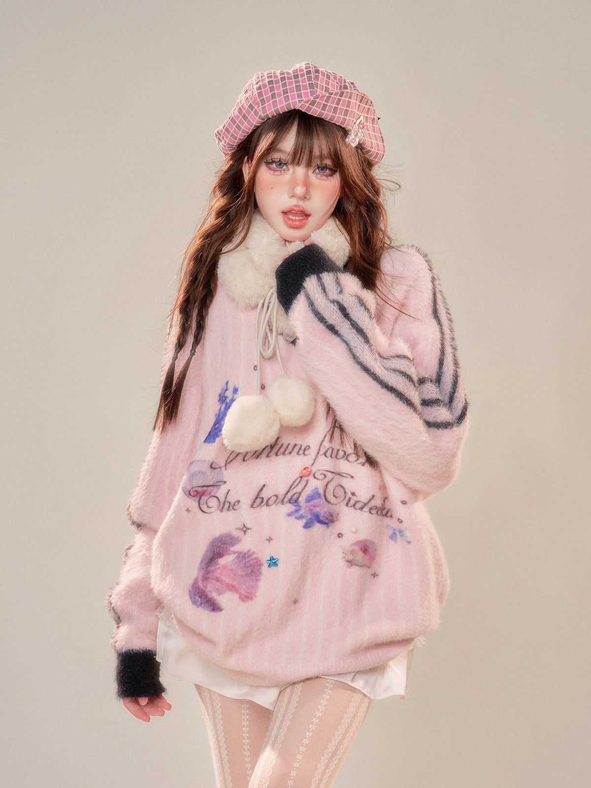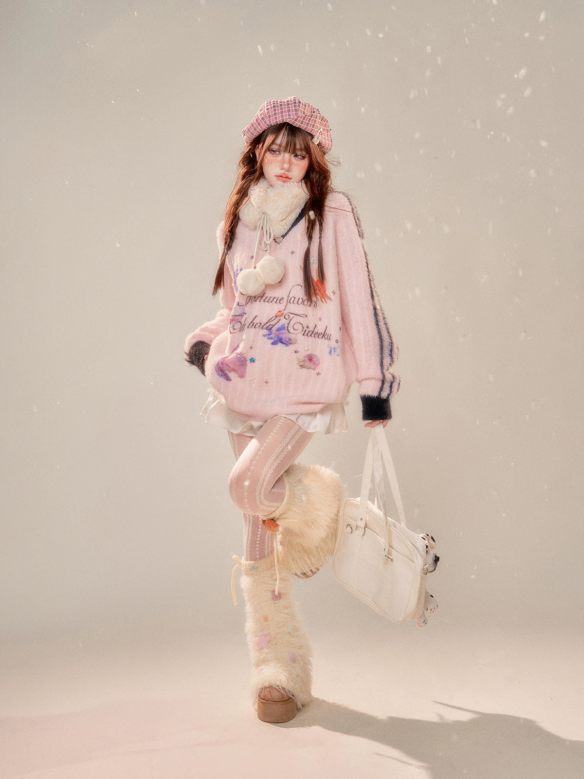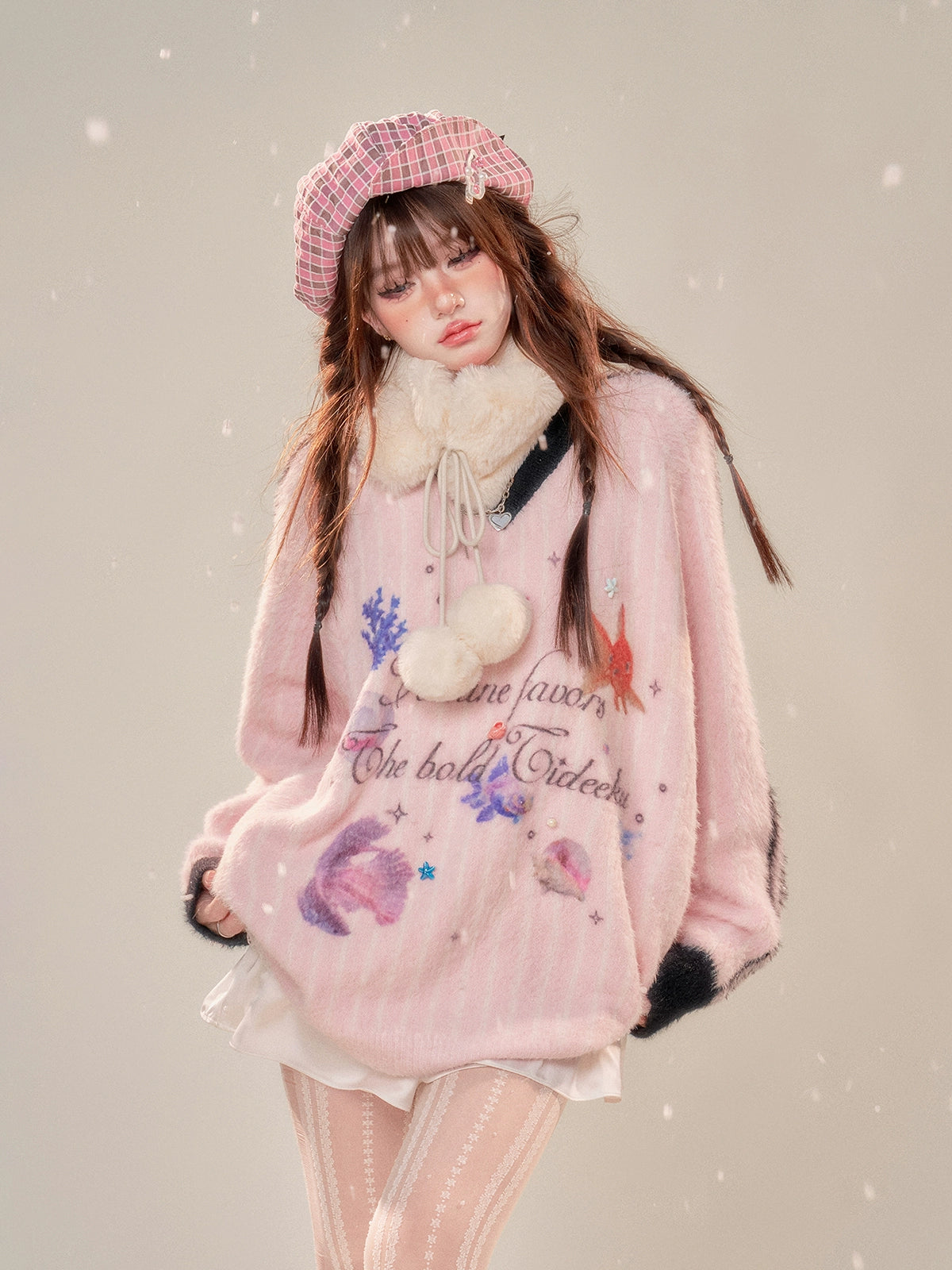 V-Neck Fuzzy Knit Sweater
