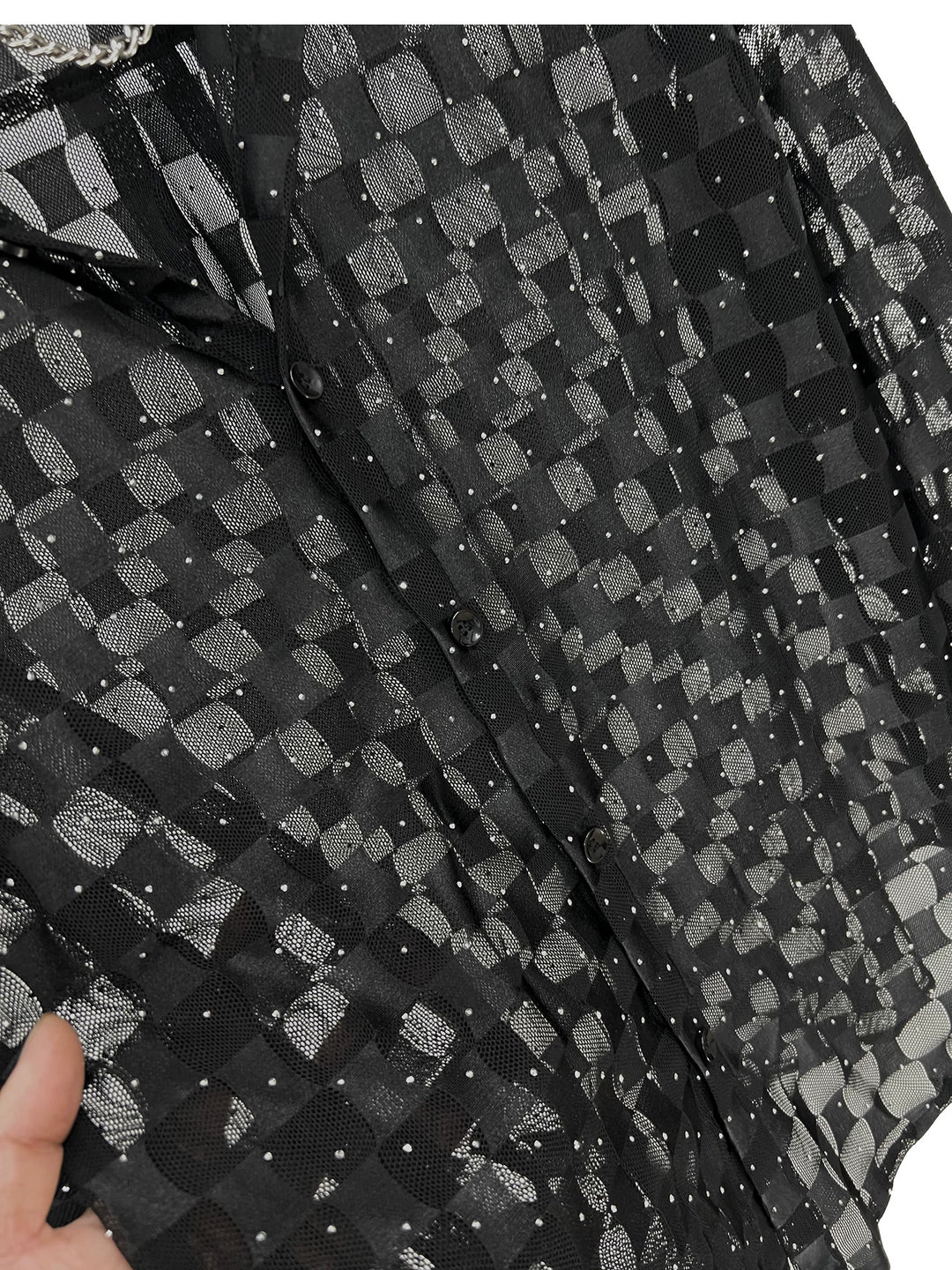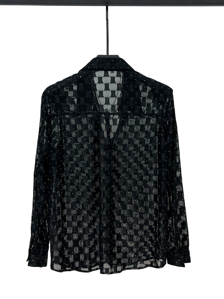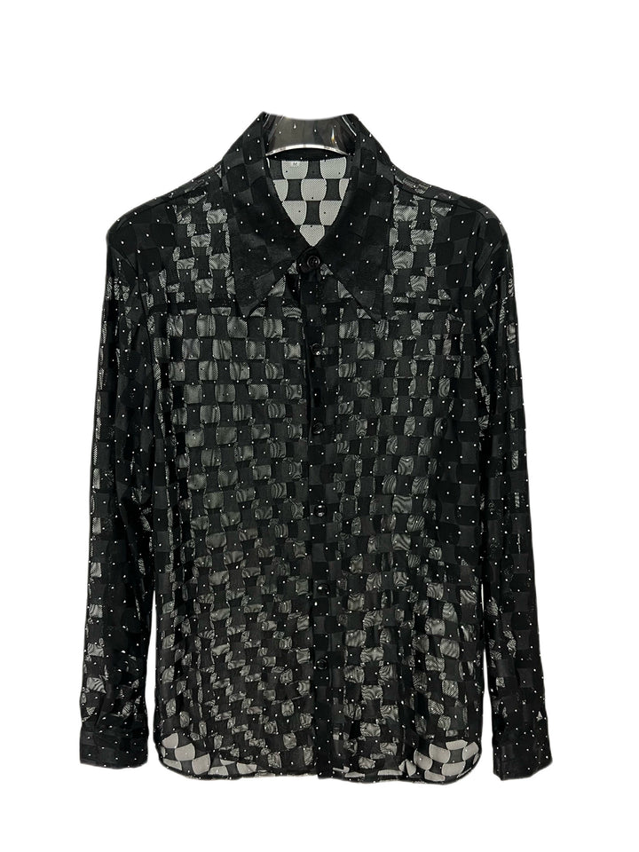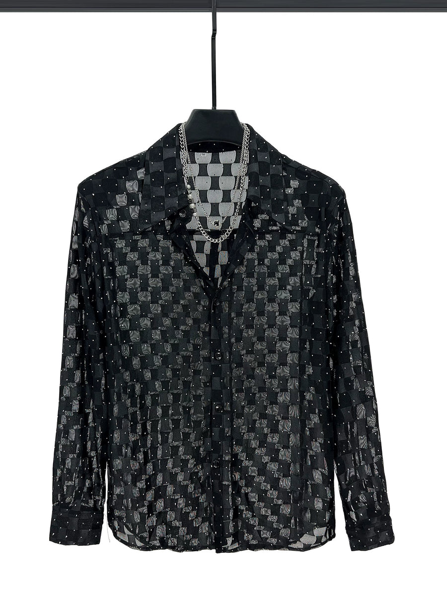 Sheer Checkered Quick-Dry Long Sleeve Shirt