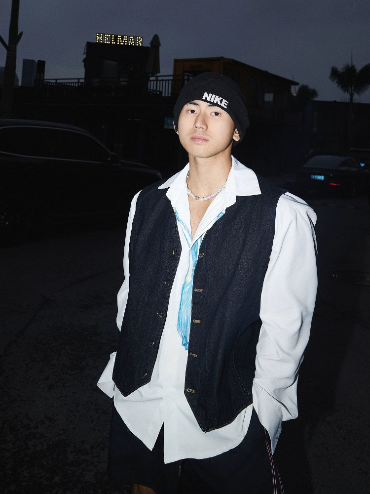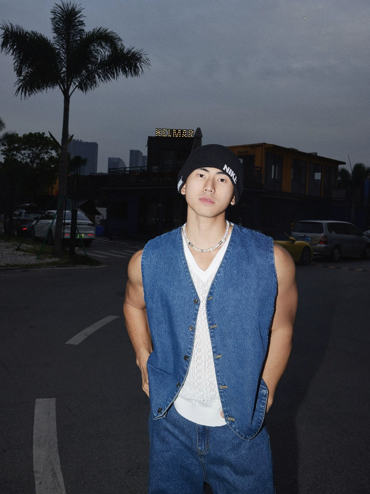 Denim Vest and Wide-Leg Jeans