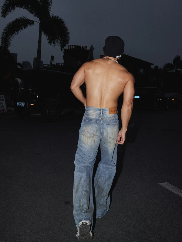 Distressed Wide-Leg Denim Pants