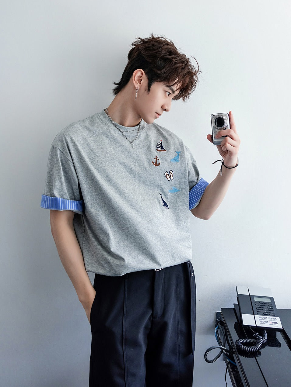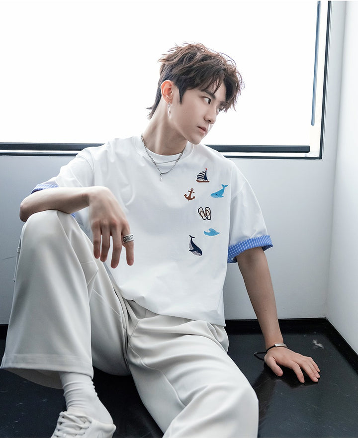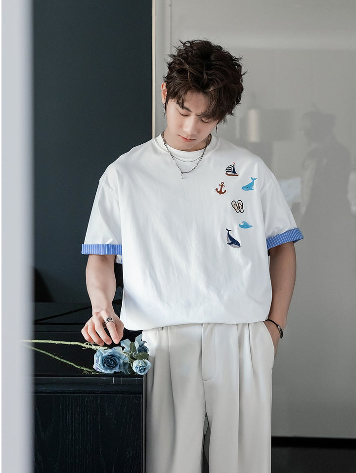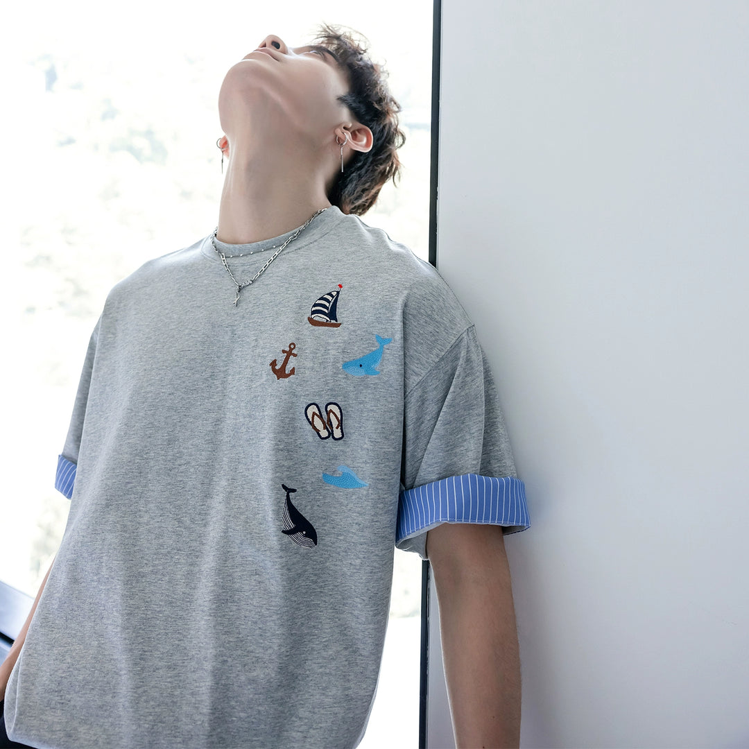 Sailing Theme Embroidered Loose Fit T-Shirt