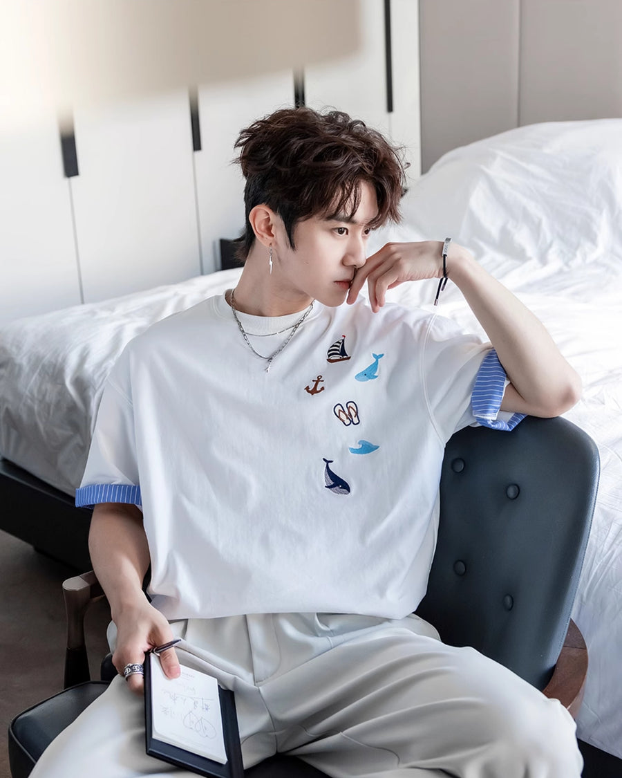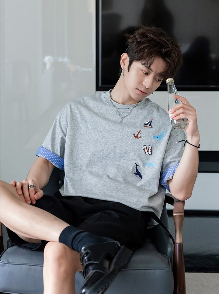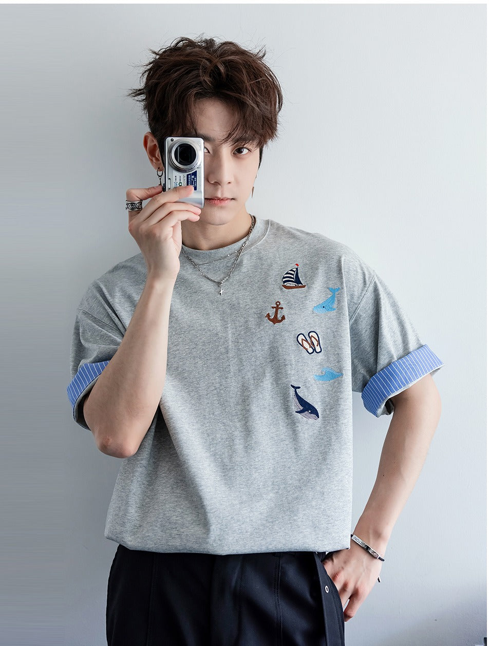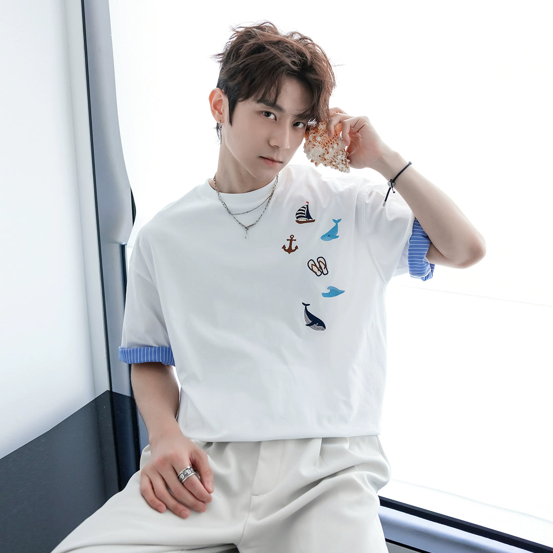 Sailing Theme Embroidered Loose Fit T-Shirt