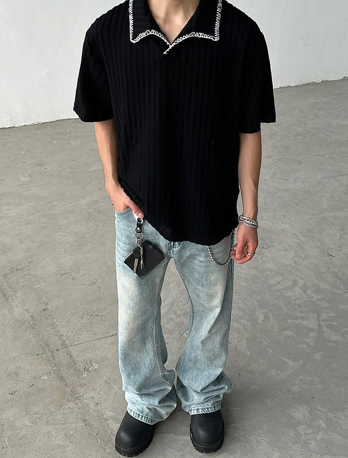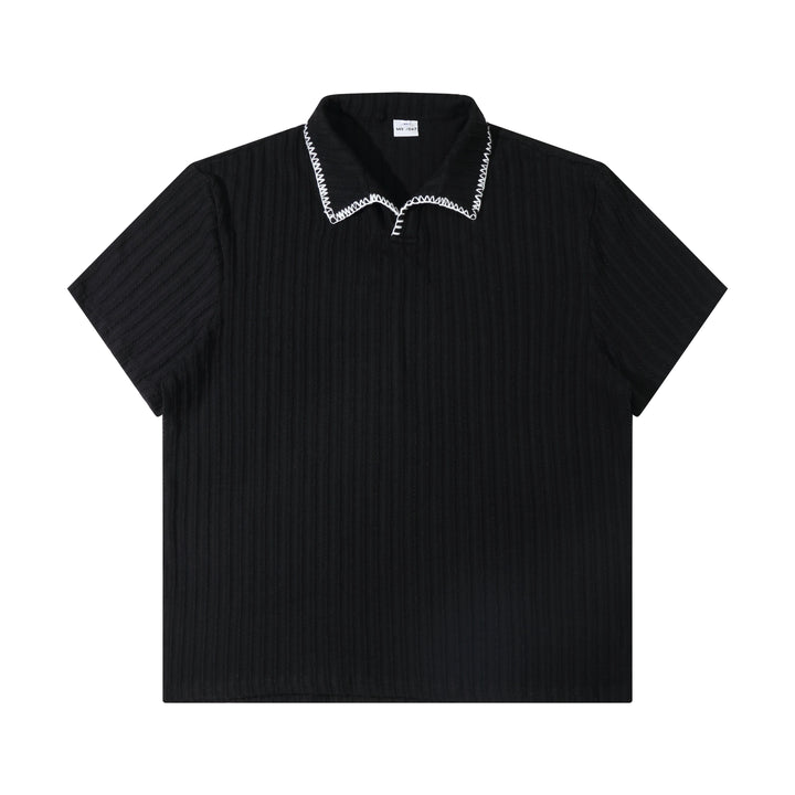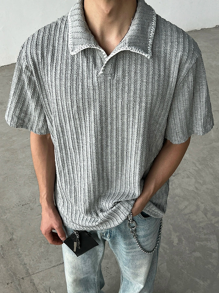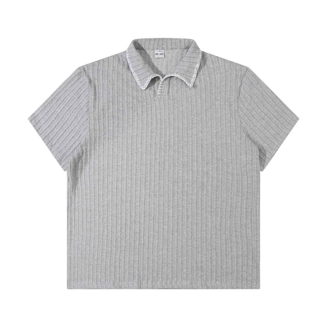Textured Knit Lapel Short Sleeve Polo Shirt